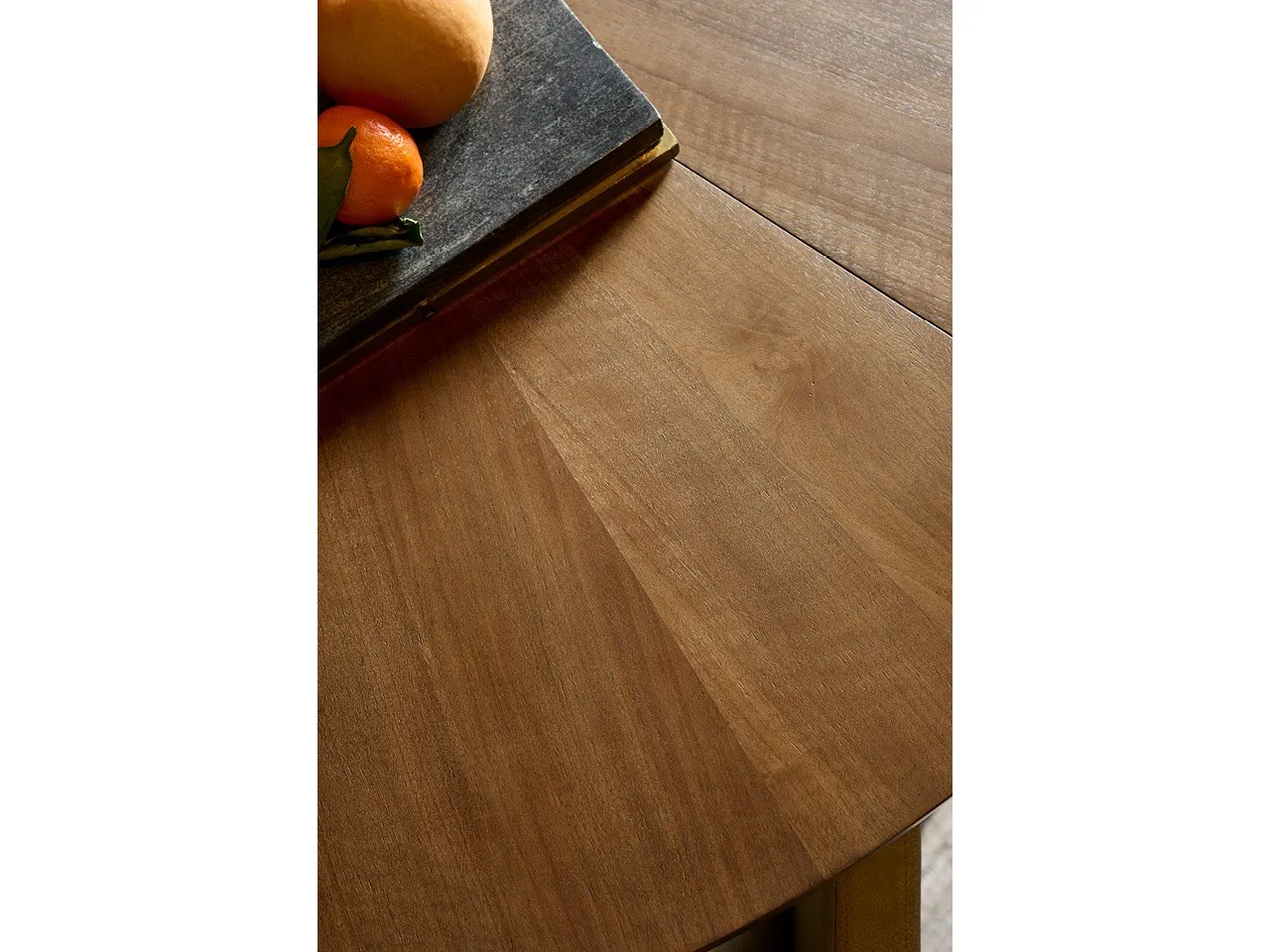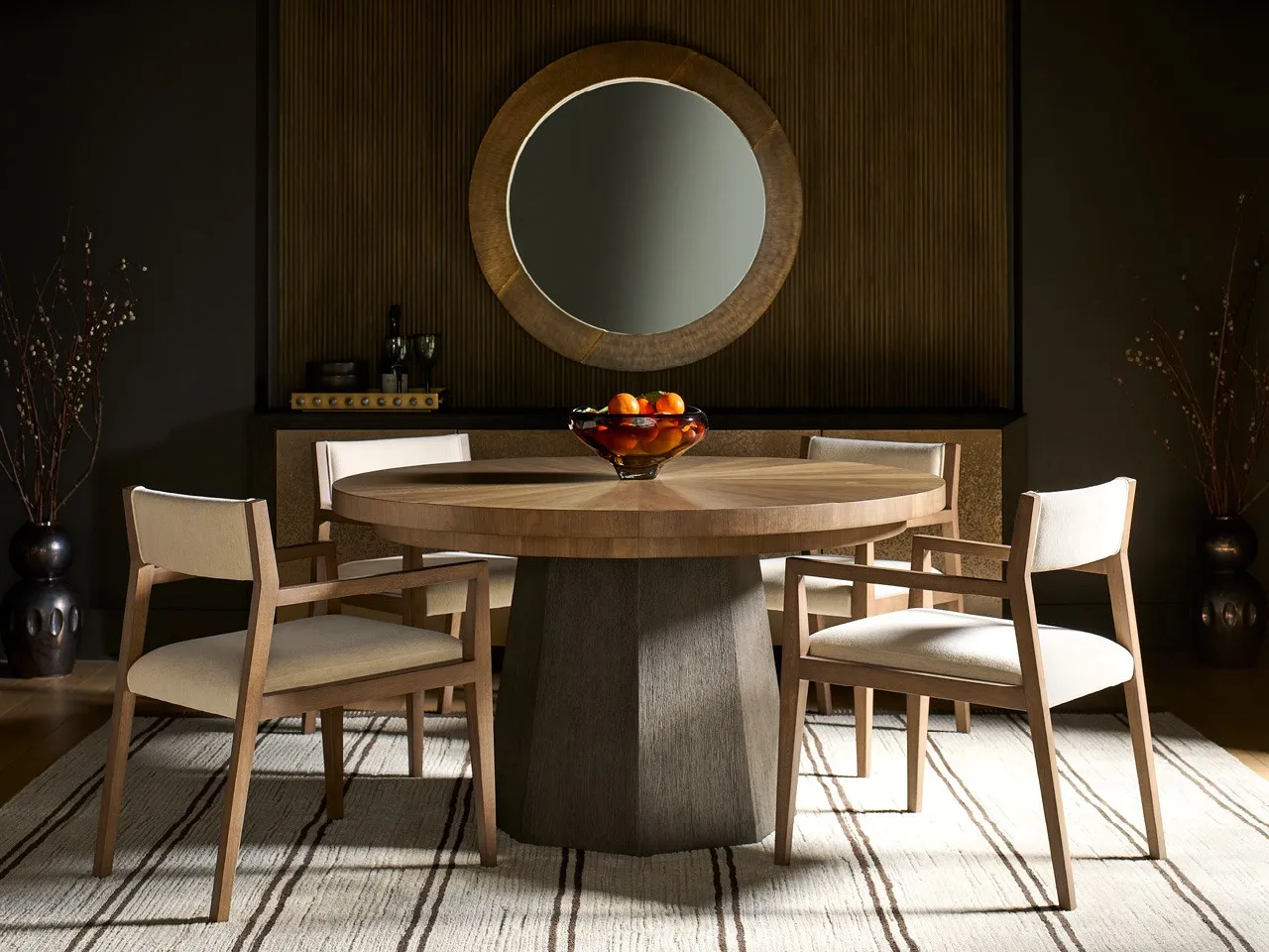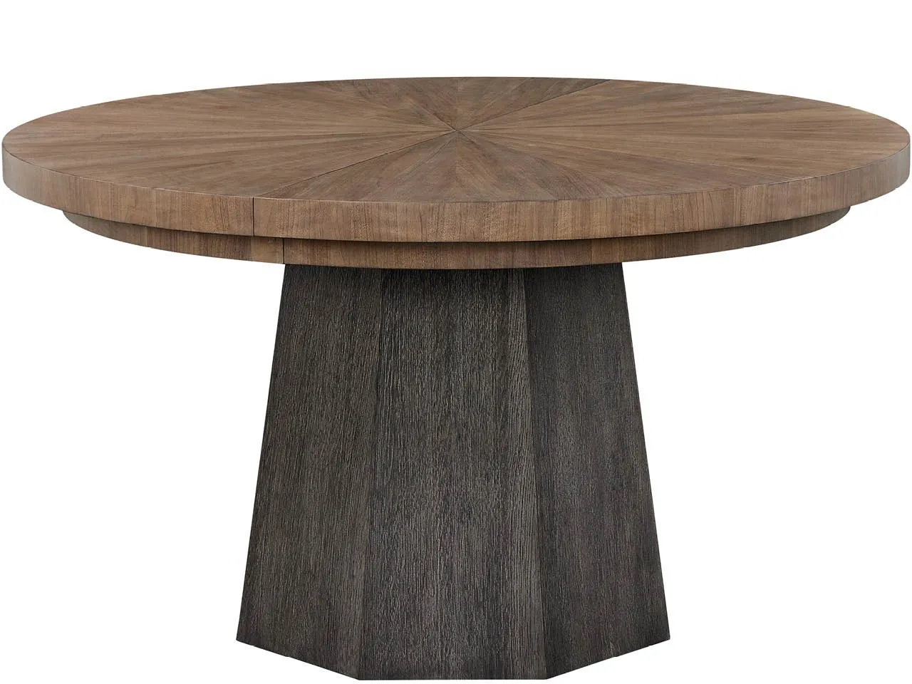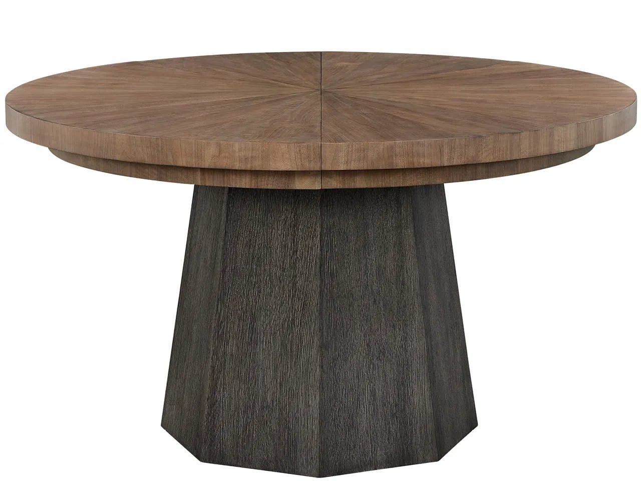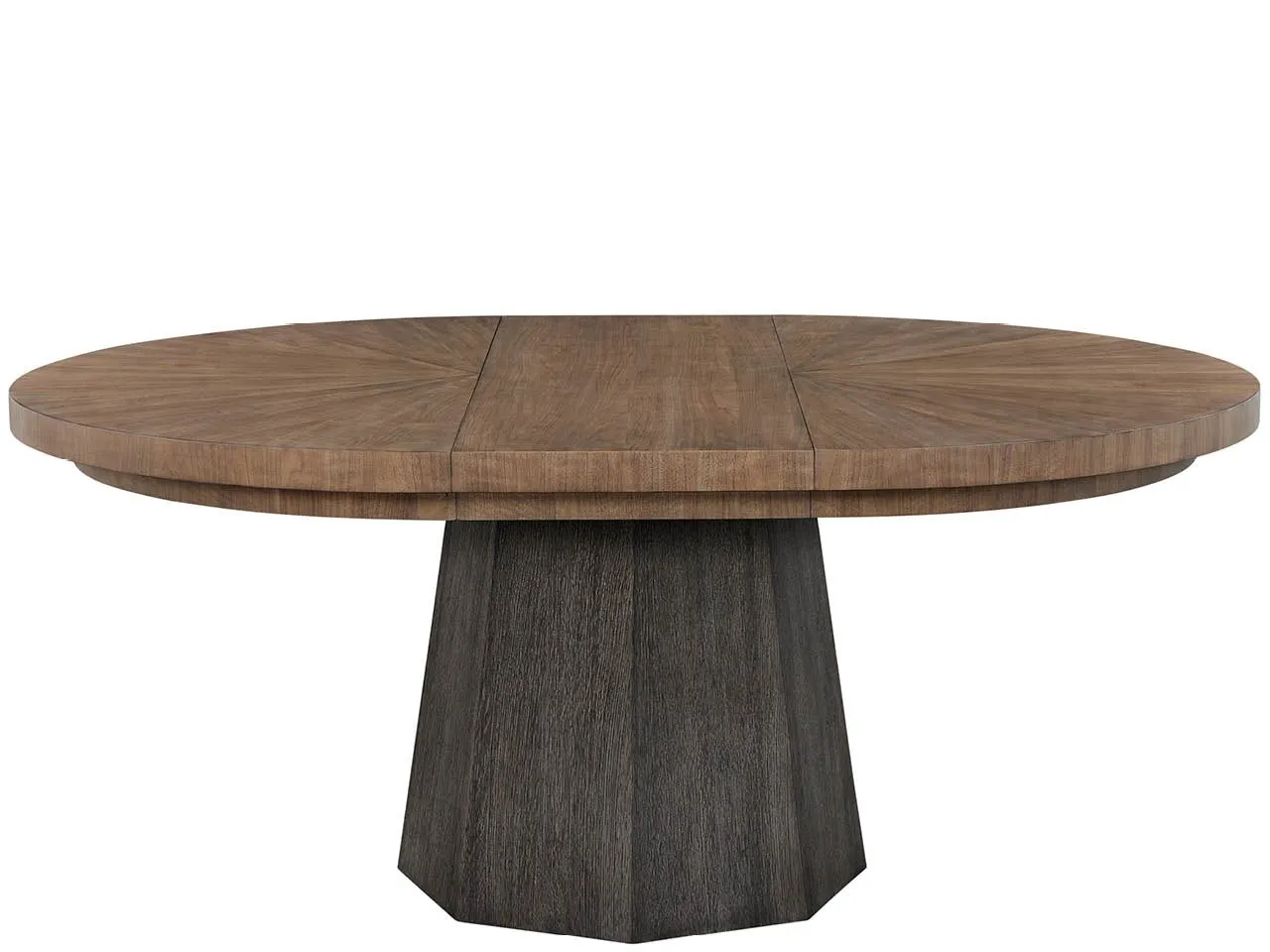 The Haze Round Dining Table anchors any dining space with its figured Haze Walnut top. This circular table is thoughtfully designed with a single leaf for effortless expansion when hosting.