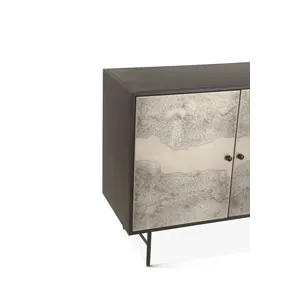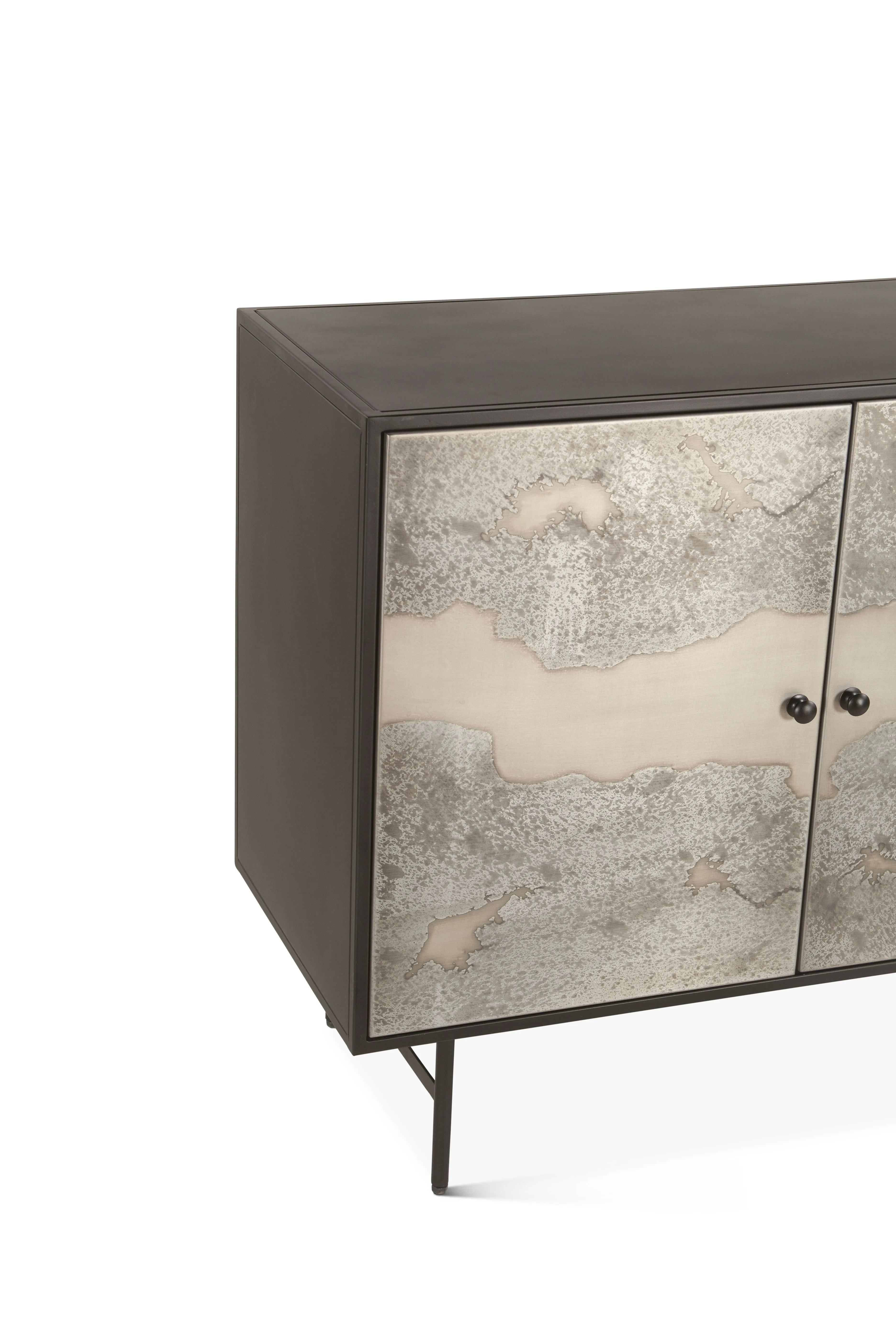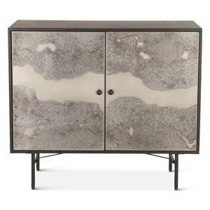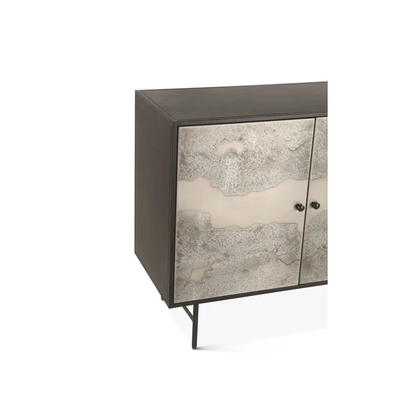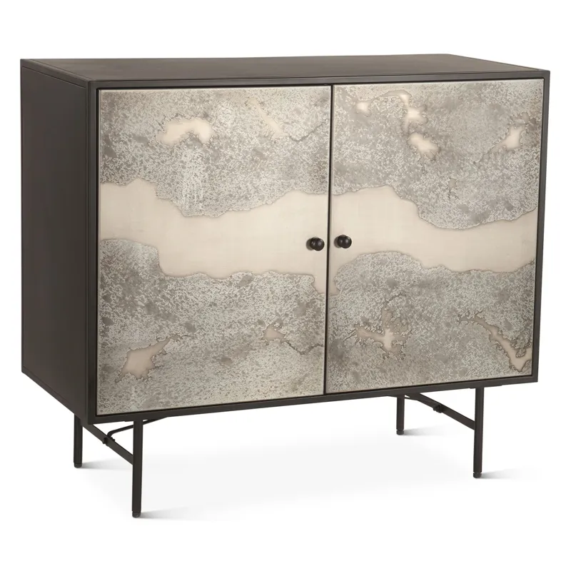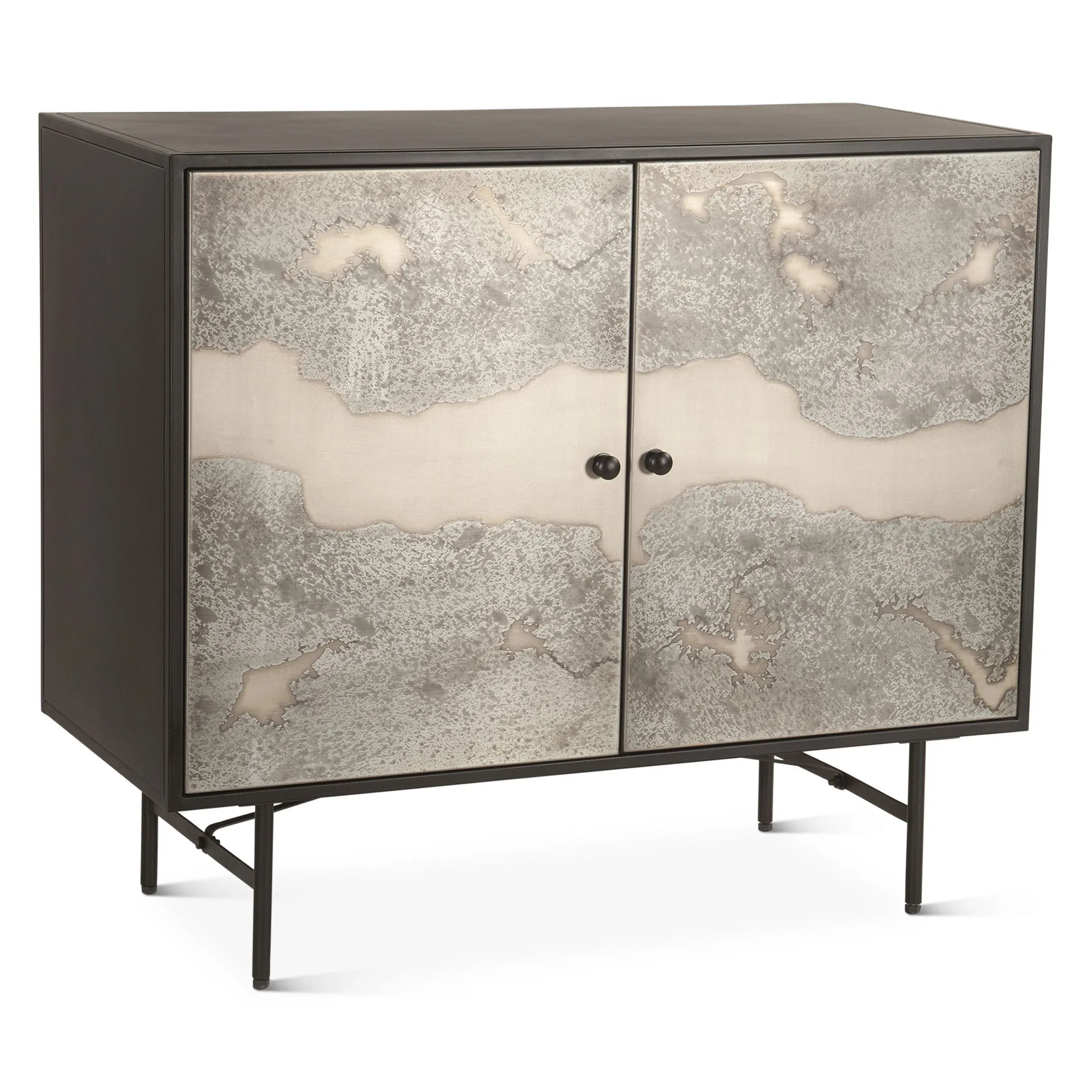 The Moab 39" Bar Cabinet in Oxidized Black blends modern design with industrial character. Finished in a deep oxidized black, this cabinet offers ample storage for barware and spirits, featuring a sleek yet functional design that enhances any entertaining space.