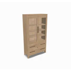 Oxford Bookcase (No Lock), 3 Wodden Shelves, 2 Drawers