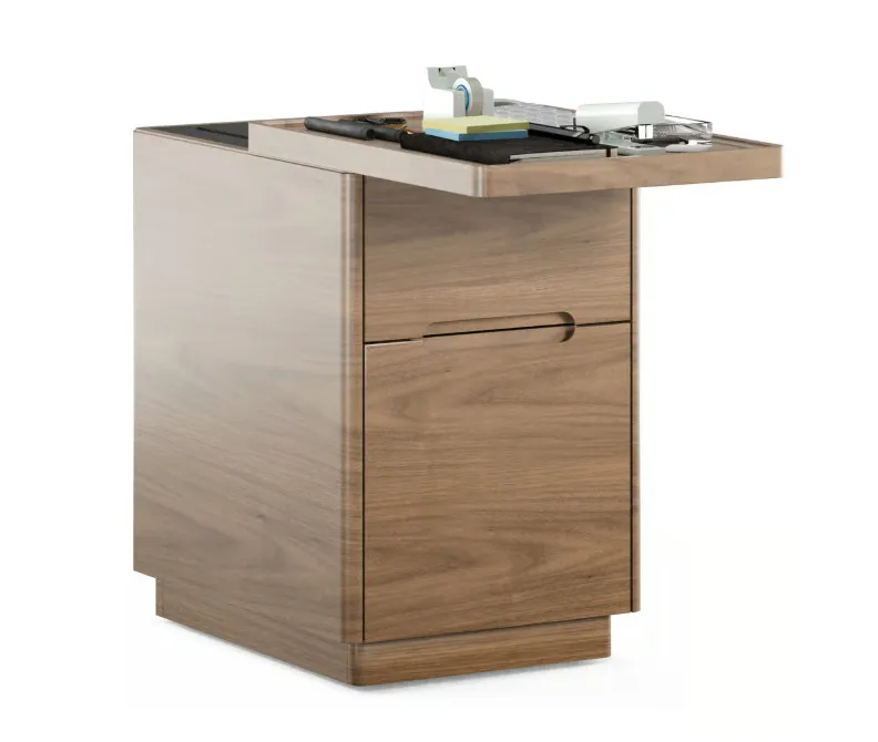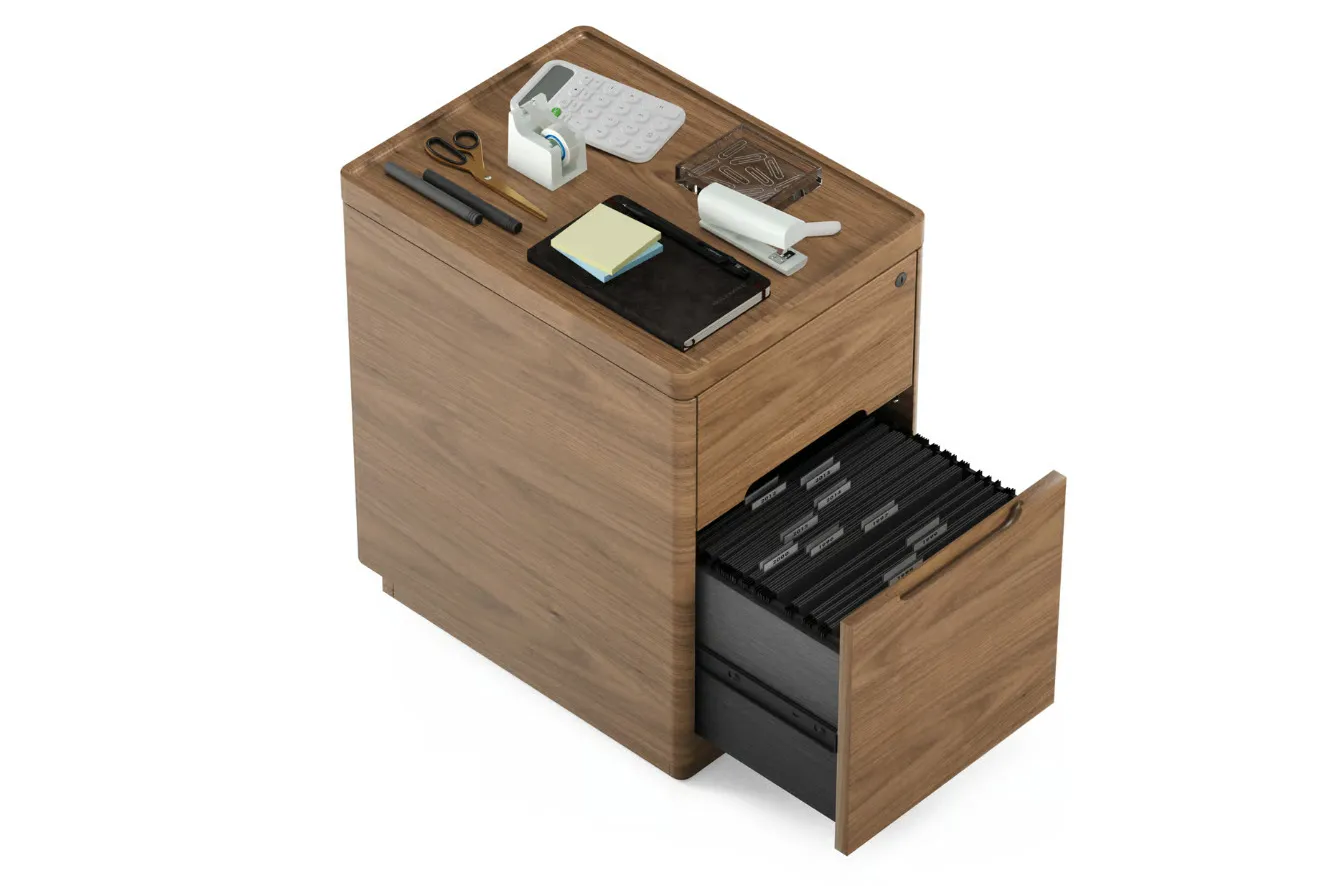Crafted with a thoughtful blend of solid hardwood and natural wood veneers, the File Pedestal offers durable construction with a smooth, satin finish. The natural wood tones add warmth and visual texture, complementing any modern workspace.