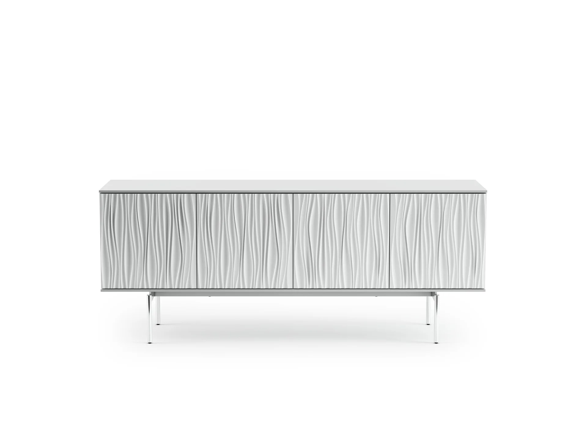 Contrasting straight lines with flowing, sculpted patterns, this stunning modern console collection is certain to be a conversation starter and the focal point of any room, whether used for storage in a dining room or entryway, or in the living room as the center of home entertainment.