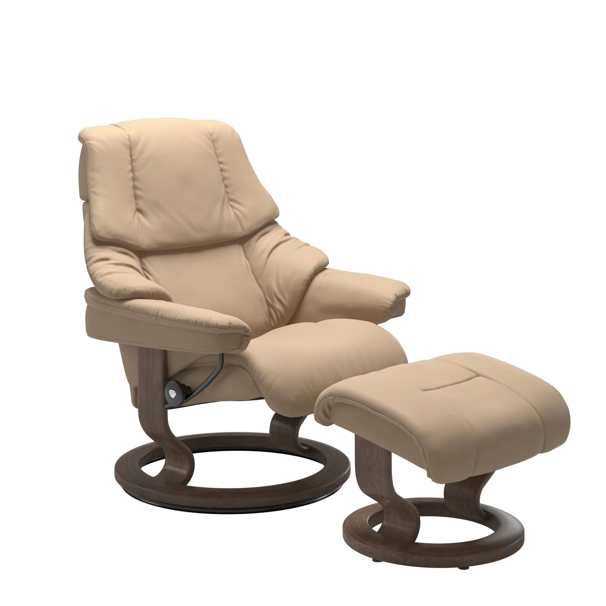 Reno (L) Classic Chair w/Footstool - Paloma Beige & Walnut by Stressless