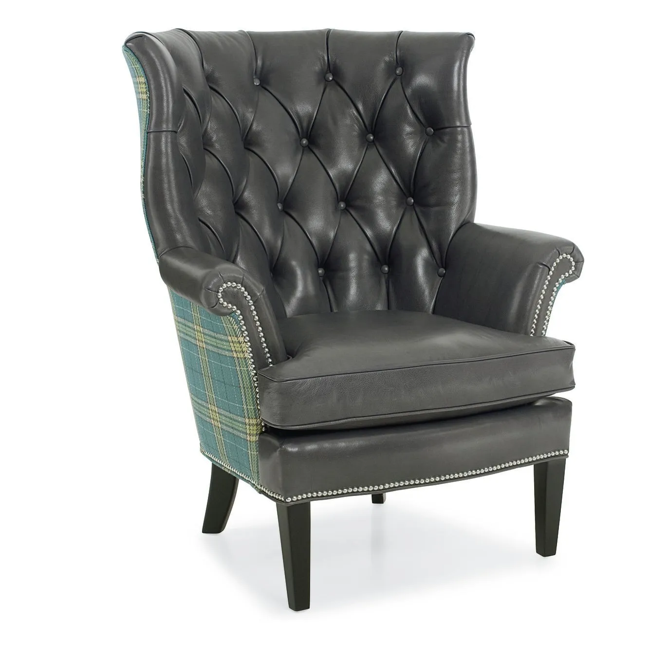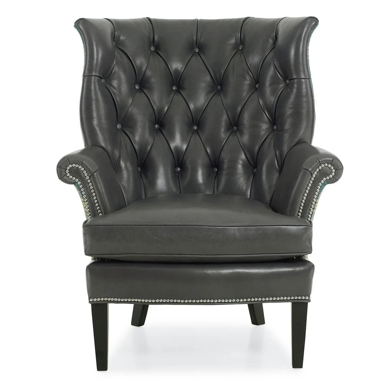 Standard with small brass (shown with optional pewter) nail head trim around base and front arm panels as shown.