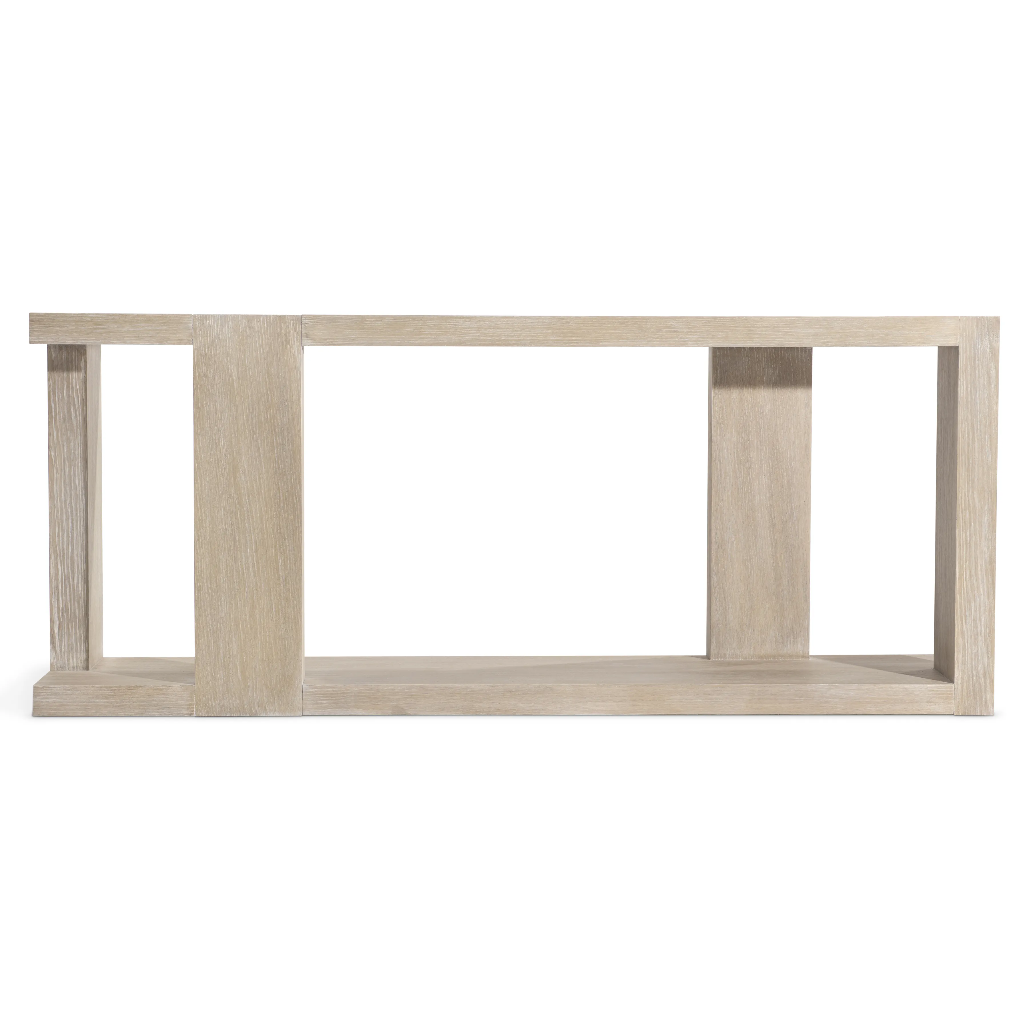 The Darsa console table finds a stylish definition in sleek lines and bold shapes. Two side panels are formed with wider profiles, balanced by a thinner panel on the front and one on the back for a unique asymmetrical design. Wire-brushed oak offers texture.