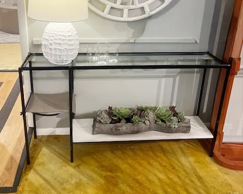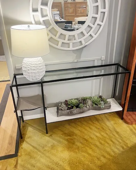 SLING CONSOLE W/GLASS TOP