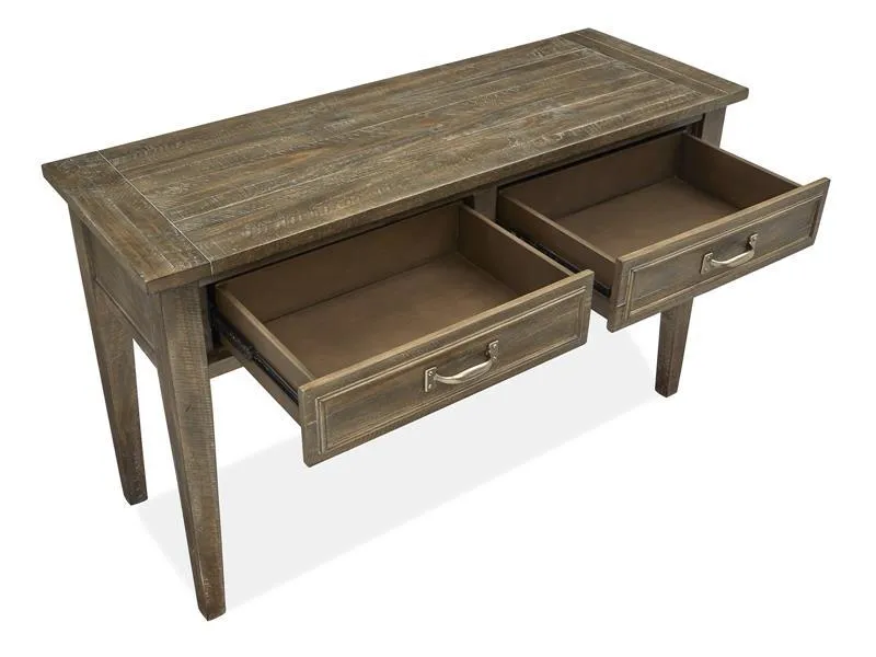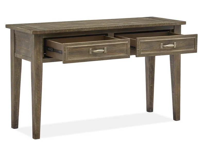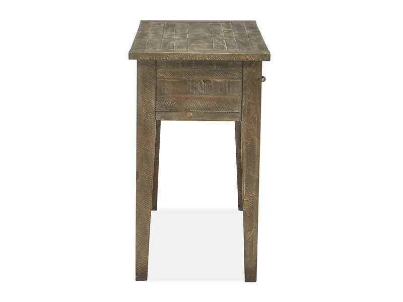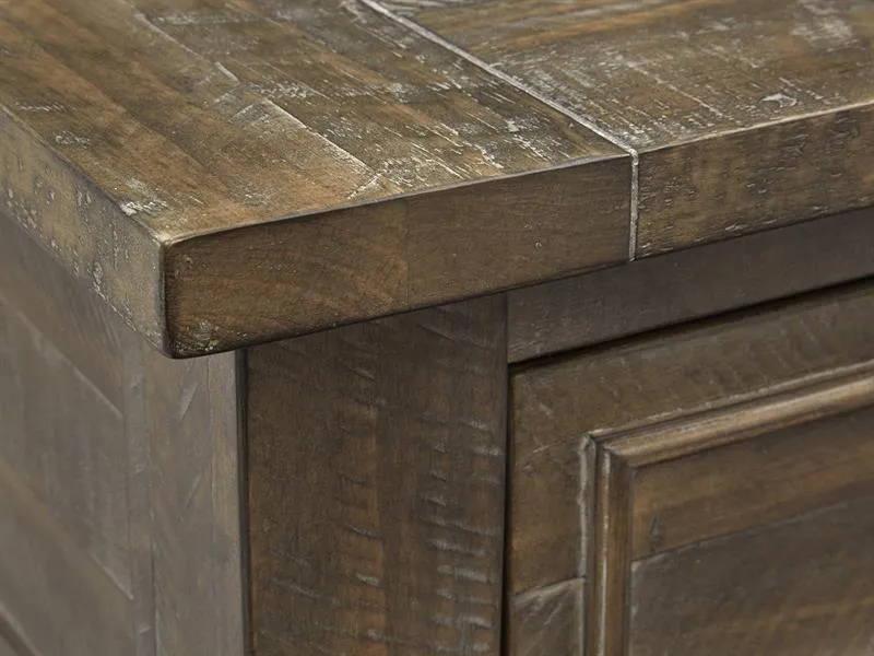 Create a warm, welcoming room with the classic, timeless character inherent in the Bridgefield table collection. Sure to complement any décor, its clean lines are highlighted in a fashionable Weathered Caramel finish paired with Light Antique Brass hardware. Straightforward silhouettes make a handsome style statement while storage drawers create added functionality. With eye-catching beauty, the Bridgefield group is the perfect choice for elevating your décor and creating your dream living space.