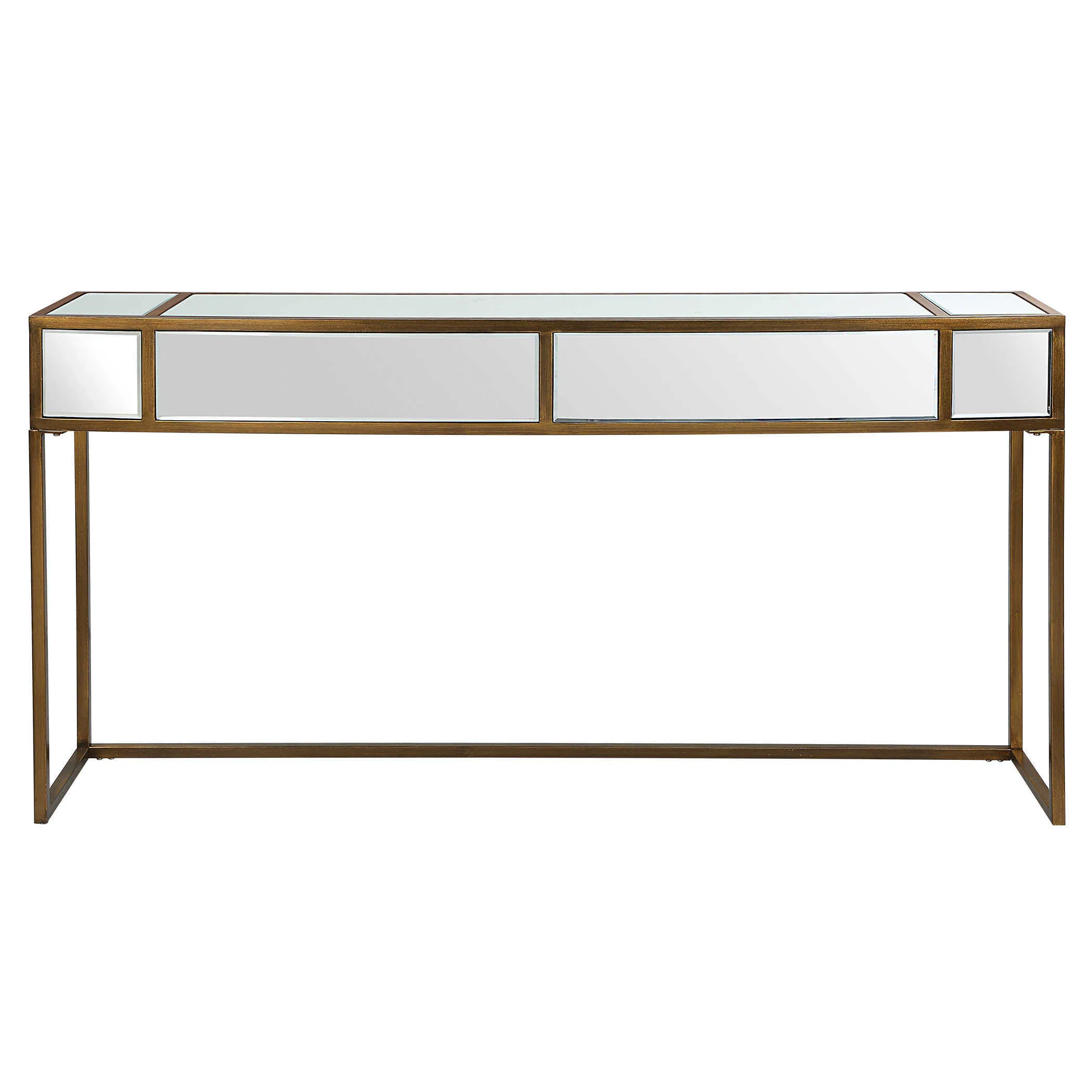 Classic and sophisticated, the Reflect Console is made with a solid iron frame finished in a brushed aged gold and mirrored accents.