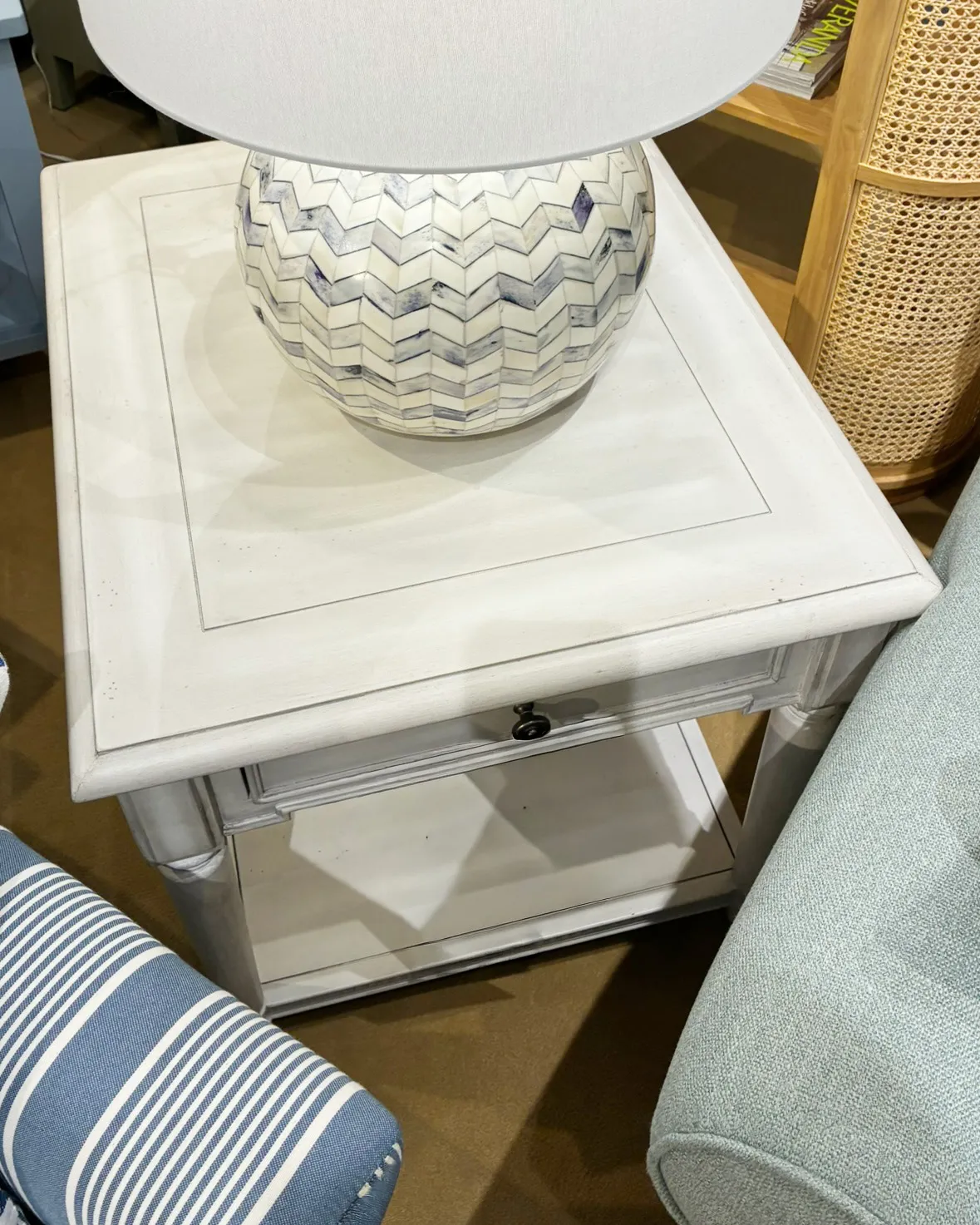 The Terrace collection takes its inspiration from French and Swedish furniture of the Louis XVI era. Re-imagined for today, the group features a lovely Meringue finish, freshening the look for todays consumer and accenting the historical elements.