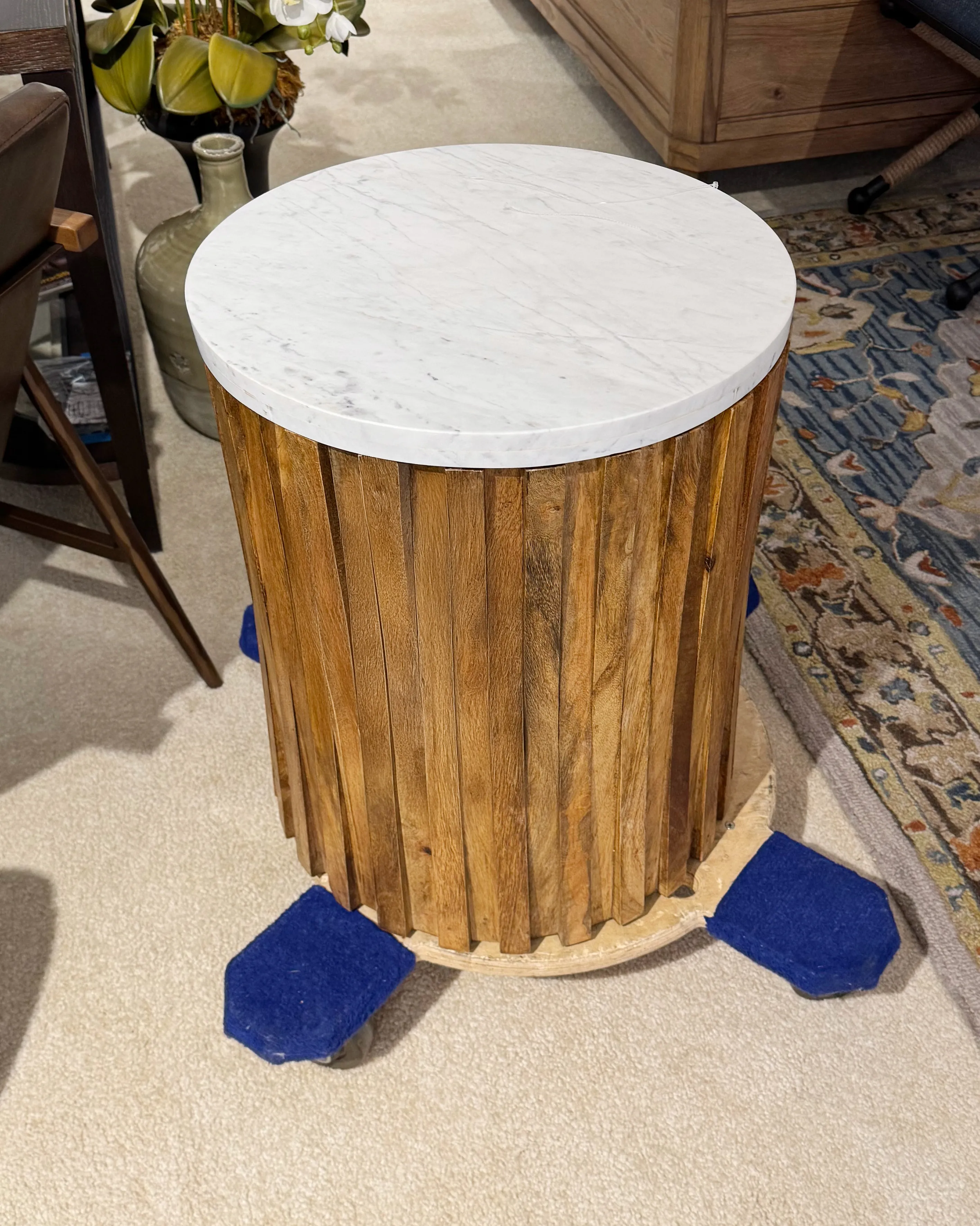 ROUND SIDE TABLE W/STONE TOP
