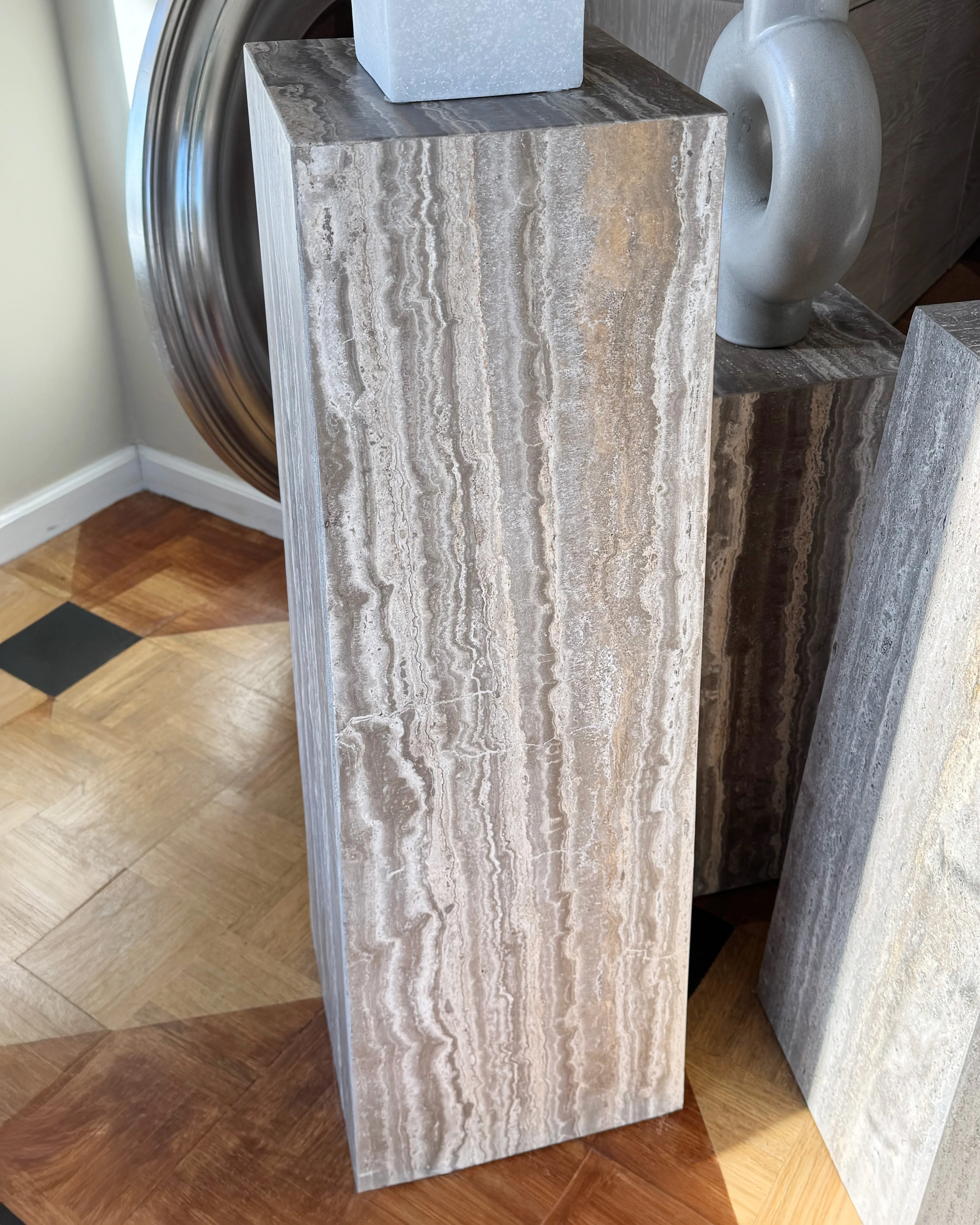The Rollier Spot Table is a minimalist masterpiece that exudes modern elegance. Its slender silhouette, crafted from exquisite Gray Travertine, creates a striking visual impact. Perfect for holding a single cocktail or a small decorative object, this versatile table is available in small, medium, and large sizes to suit your space. A captivating addition to any interior.