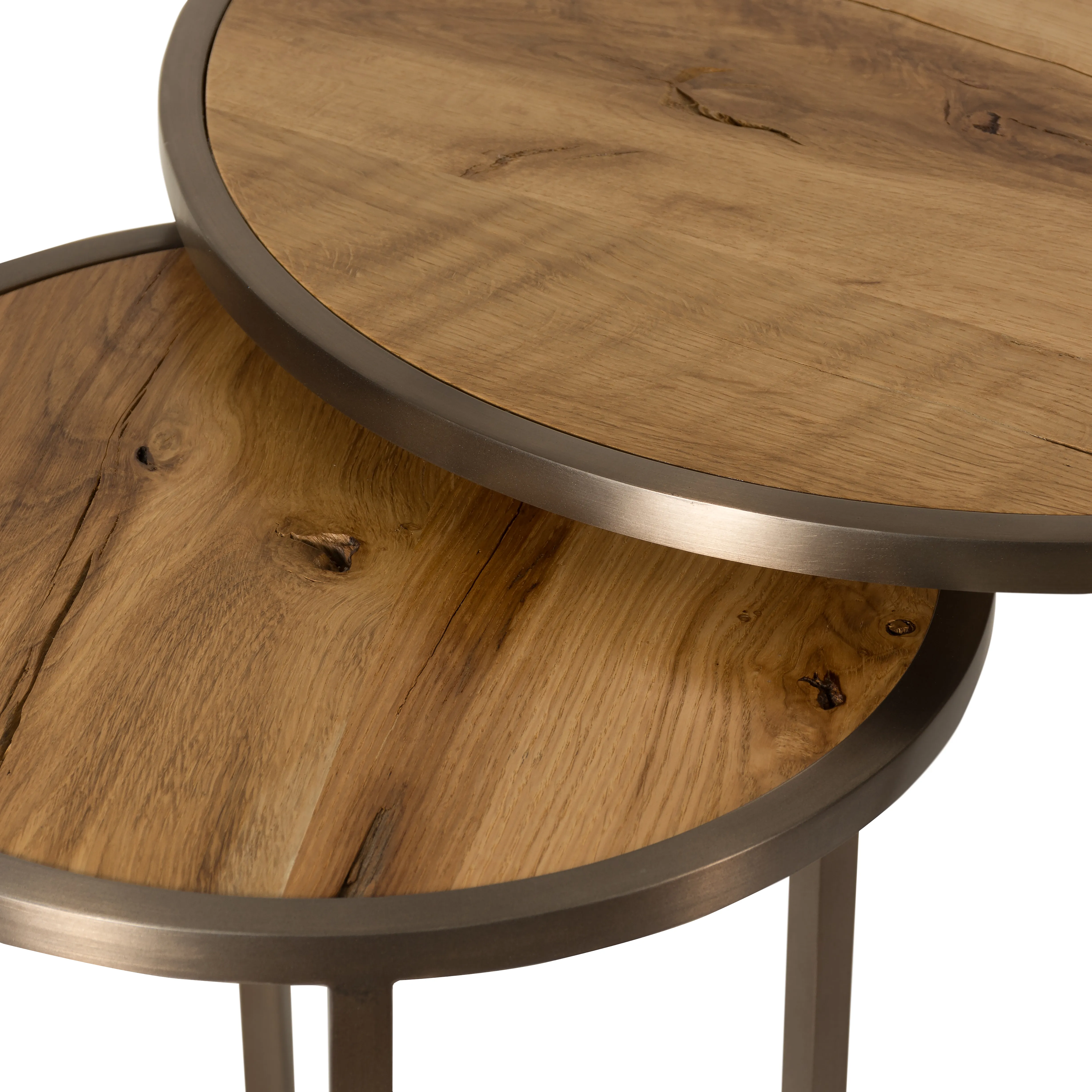 Colors: Light Bronze, NaturalMaterials: Mild Steel, Reclaim Oak Solid