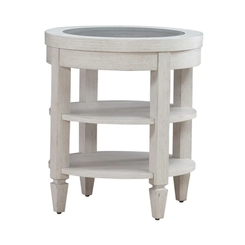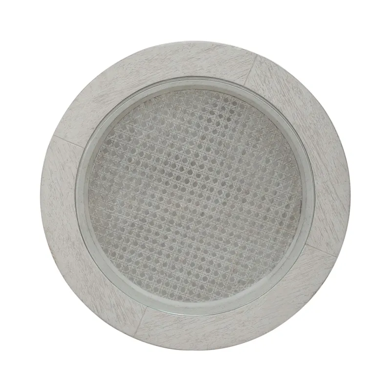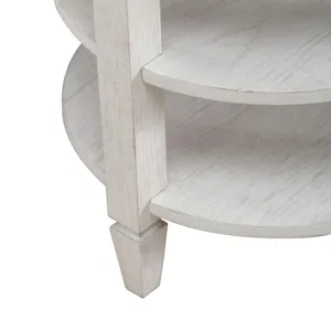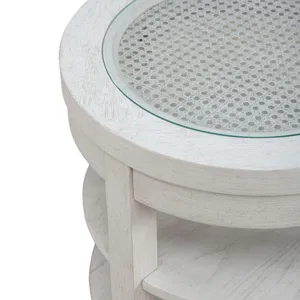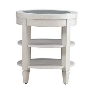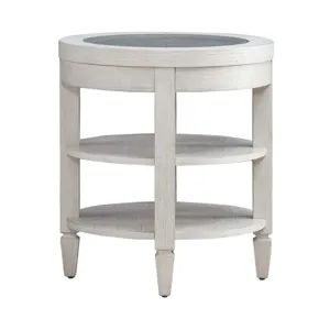Create the space you’ve always desired with the Caruso Heights chairside table. Meticulously crafted using Rubberwood and Poplar solids with Split Heart White Oak veneers, this table features a Whitestone finish. At the heart of this piece lies a tempered glass insert on the top, offering a captivating view of the intricate cane panel accent beneath. This unique feature adds a touch of elegance and visual interest to any living space. The table is supported by square block legs and tapered feet, exuding a sense of modernity while providing sturdy stability. These legs effortlessly flow downward, accentuating the table's sleek silhouette. Practicality meets aesthetics with two fixed bottom shelves, providing ample storage and display space for your favorite items. Whether it's books, decor pieces, or essentials you want within reach, this table offers the perfect solution. Enhance your home decor with the Caruso Heights chairside table, where functionality meets exquisite design in perfect harmony.