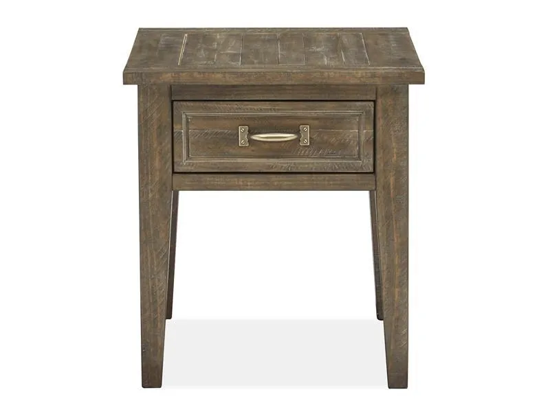 Create a warm, welcoming room with the classic, timeless character inherent in the Bridgefield table collection. Sure to complement any décor, its clean lines are highlighted in a fashionable Weathered Caramel finish paired with Light Antique Brass hardware. Straightforward silhouettes make a handsome style statement while storage drawers create added functionality. With eye-catching beauty, the Bridgefield group is the perfect choice for elevating your décor and creating your dream living space.