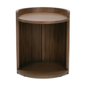 The Kindred Round End Table masterfully merges architectural elegance with functional design through its distinctive reeded surface detailing - a hallmark of sophisticated furnishings. This solid solid mahoganypiece commands attention with its gracefully curved silhouette and rhythmic vertical grooves, creating a mesmerizing interplay of light and shadow that adds depth and visual interest to any room. Available in both rich Godiva and light Sesame finishes, this versatile end table features two circular platforms perfect for displaying cherished objects or providing convenient surface space, while its drum-style profile creates an engaging sculptural presence that works beautifully in both classic and contemporary settings. The table's meticulous craftsmanship shines through in every detail, from its precisely carved reeding to its thoughtfully proportioned shelving, making it an enduring addition to your carefully curated space.