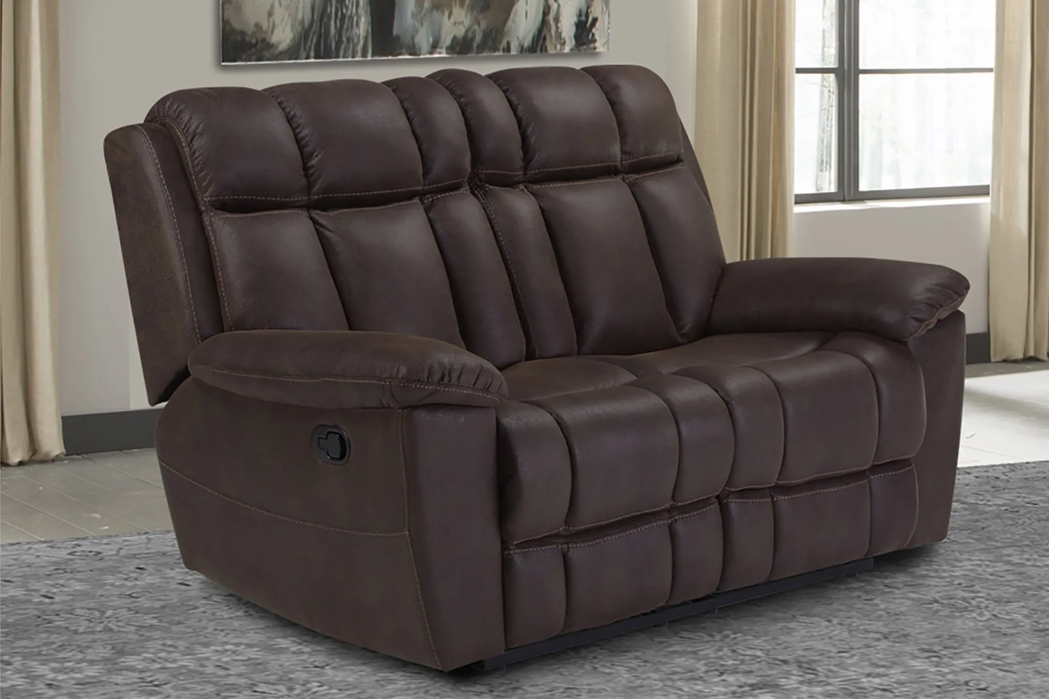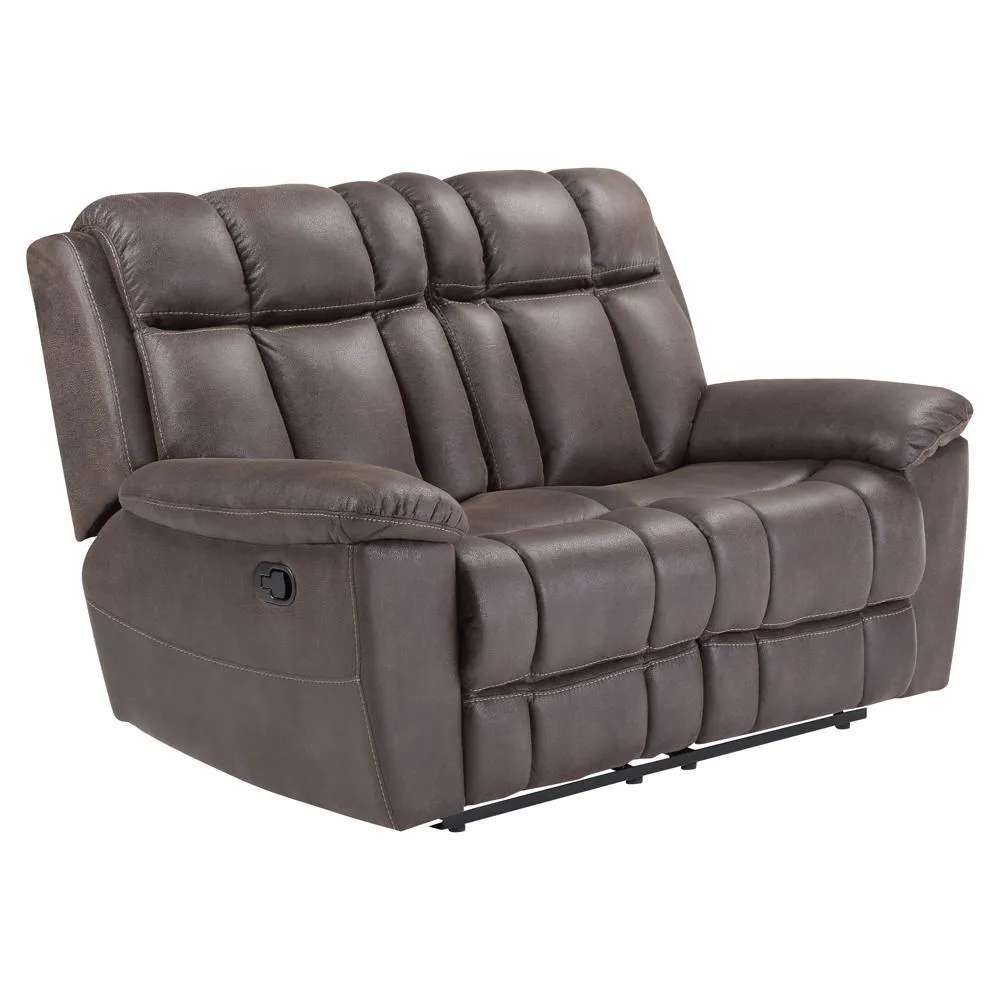 The Goliath manual reclining loveseat in Arizona Brown will impress you with its beauty and comfort. It's just the place to sit back, put your feet up, and get ready for the weekend.