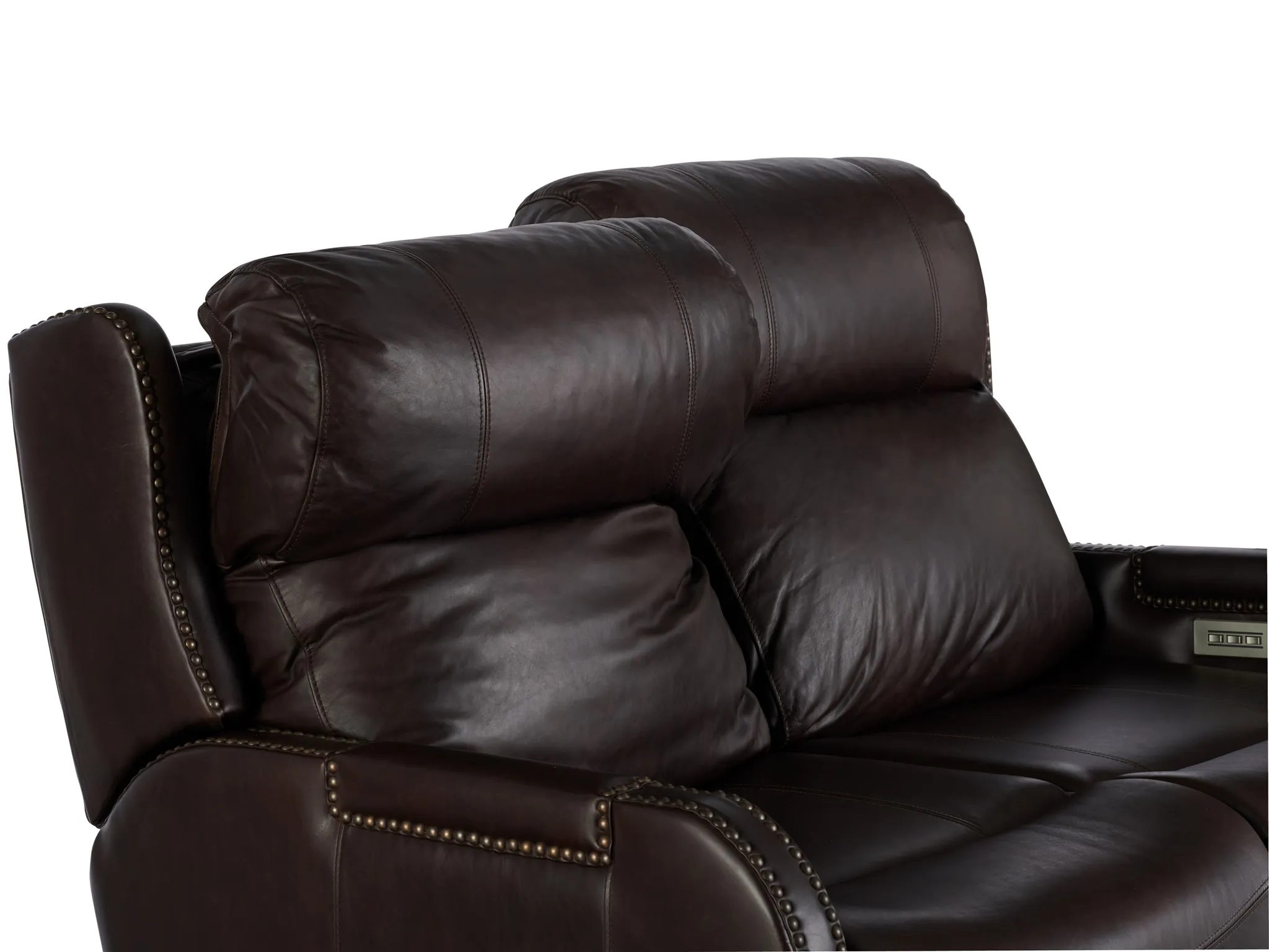 The Mayfield Motion Loveseat is a handsome interpretation of ultimate comfort paired with relaxed style, featuring a cozy 2-seat cushion with thoughtfully placed seams and low, subtle armrests. The Mayfield Motion Loveseat is outfitted with a state-of-the-art power system, making ultimate comfort easily achievable at the push of a button. Available in Hudson Iron and Hudson Umber leather.
