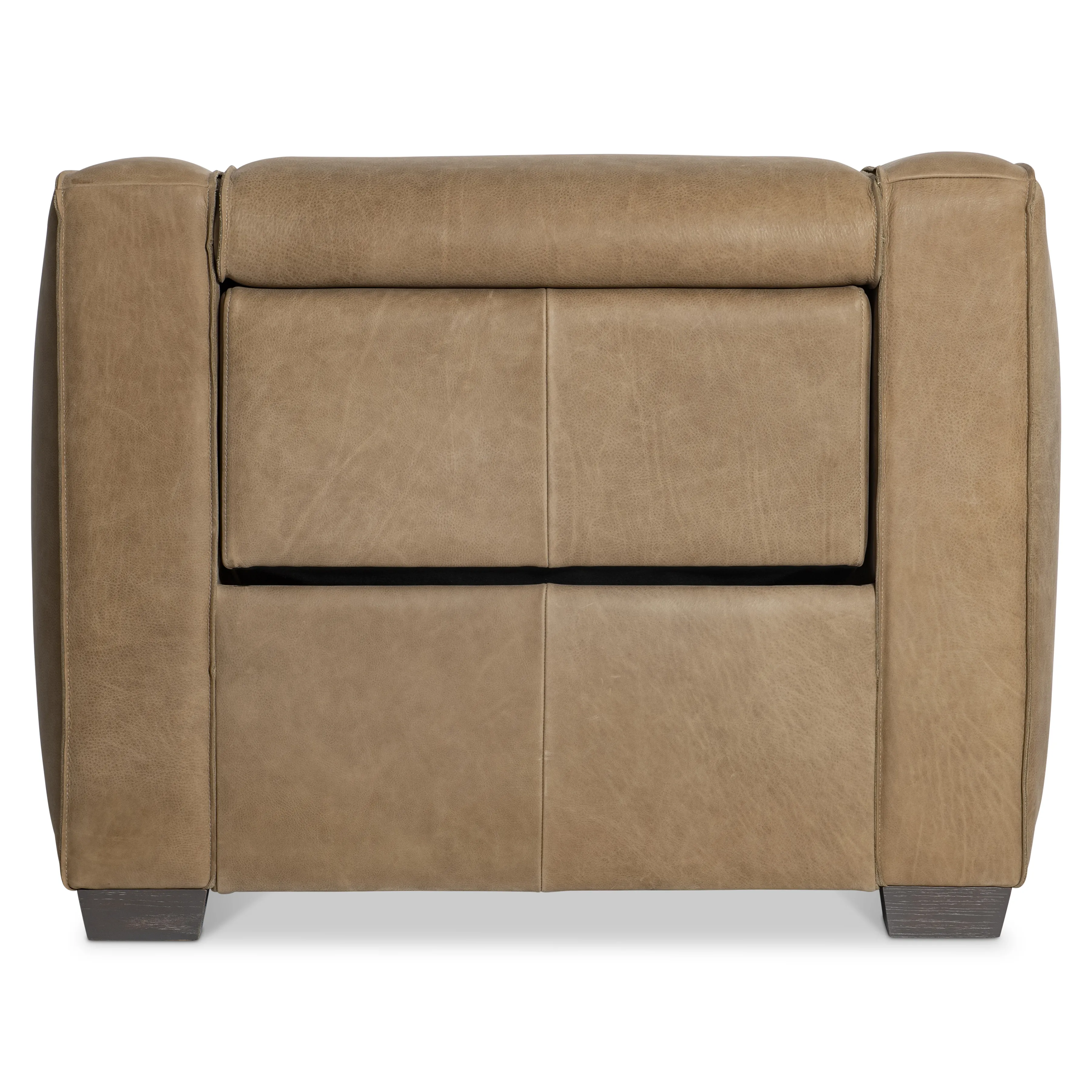 Motion finds a sleek style in the Flynn power motion chair in leather. Inspired by the classic club chair, forms are streamlined and simplified, with the softly padded curve of the arm defined by a tailored welt. Hidden controls smoothly take the seat to a comfortable recline that includes a pop-up headrest and lifted footrest.