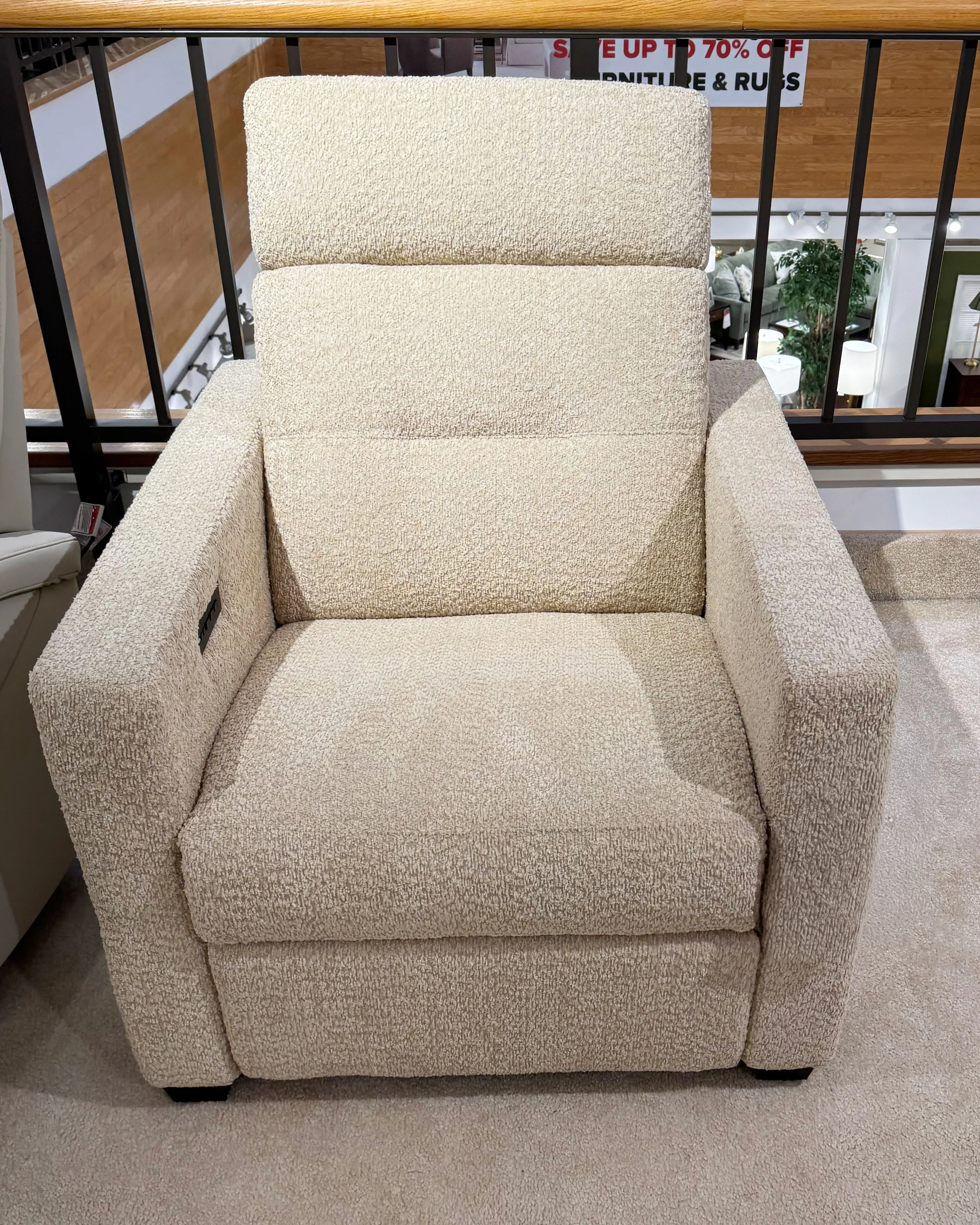 Reece begins with a transitional narrow track arm with heavily padded inside and outside panels. The outside arm panels have been further enhanced with two horizontal channels. The seat and backs mirror the track arm with box border styling and the backs include a decorative pull tuck detail and sits atop tapered solid walnut block legs. Reece comes standard with triple motor functionality; power footrest, power headrest and power lumbar. Please note the Palliser Recline app is required to access full recline functionality and additional premium features on armless pieces.