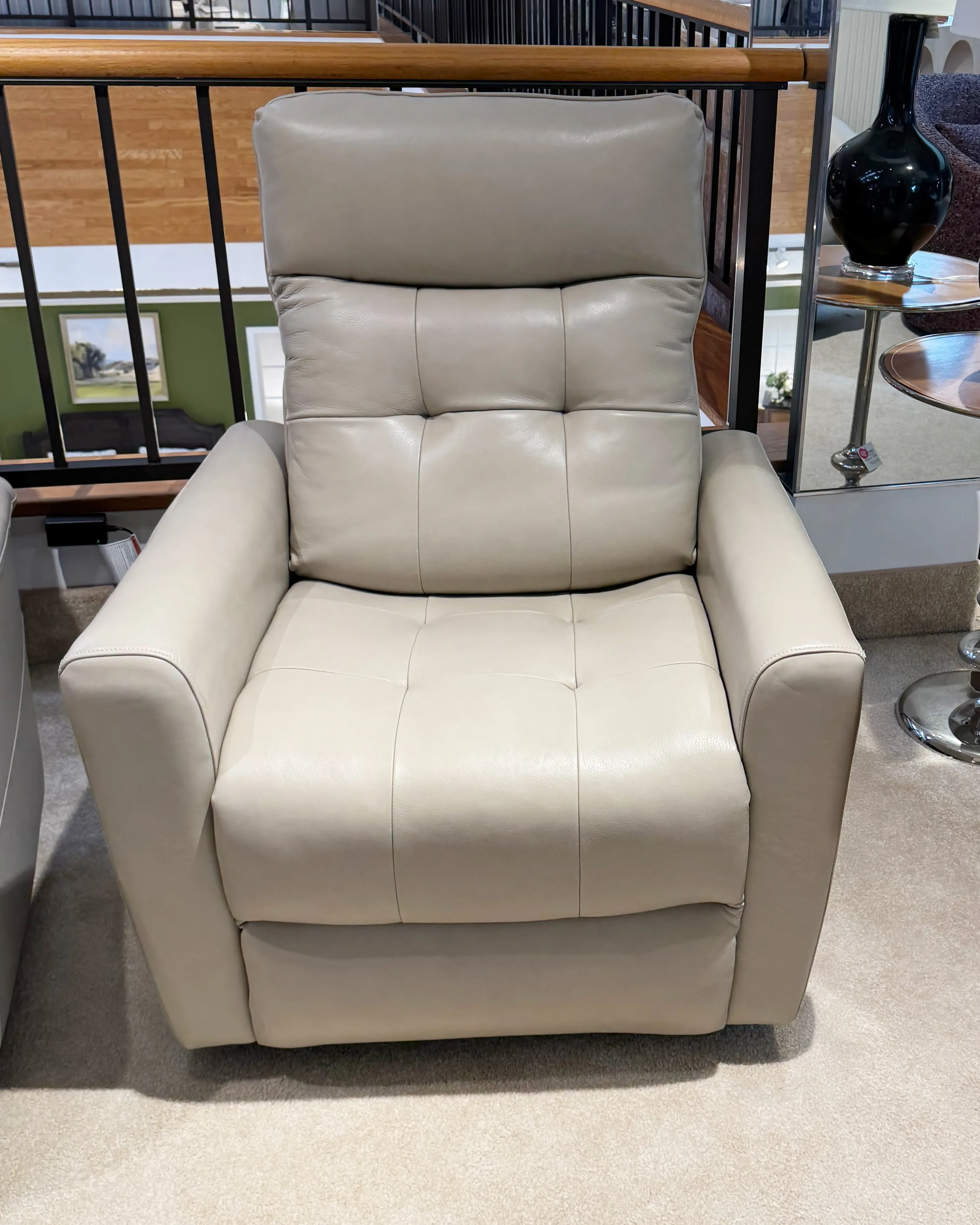 If style is the question, then this power recliner is the answer. Its clean-lined profile is beautifully contemporary. High-performance fabric and plump cushioning make it so easy to comfortably kick up your heels. The adjustable Easy View™ headrest allows a primo view of the TV, and the extended ottoman provides extra room to really stretch out. Simply sit back, chill out and recline away—this recliner is designed to be your favorite seat in the house.