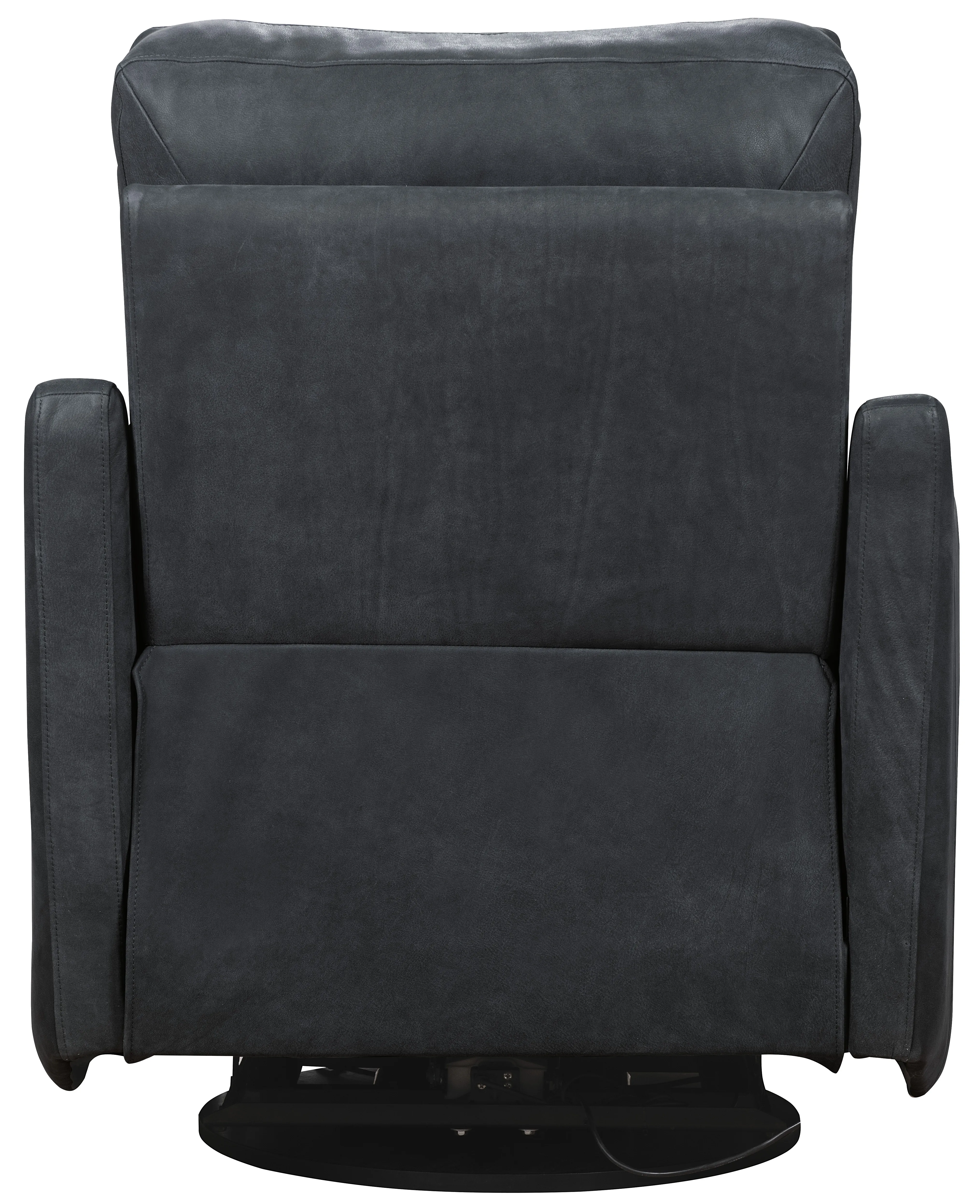 Sleek and stylish, the Lewis Power Swivel Recliner offers smooth 360-degree motion with luxurious black Cordoba Noir leather. Designed with a sloped track arm and power reclining function, this chair combines flexibility and form—perfect for open concept layouts or statement seating in modern spaces.