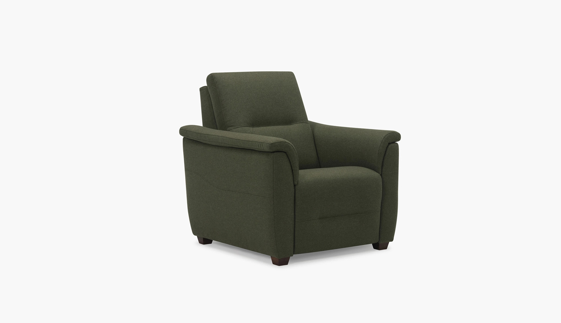 Oxford provides classic comfort with its padded armrest and decorative pull tuck detail on the seat and footrest. Standard with triple motor power recline, headrest, and lumbar, Oxford is also available with the Premium Amenities package and choice of walnut or black ash wood elements. Available in all leather, leather match, and fabrics, with the exception of accent fabrics.
