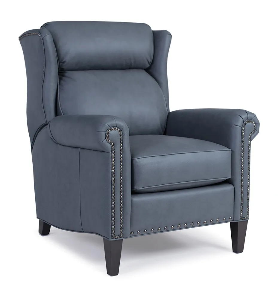 BACK STYLE: Bustle back with motorized adjustable headrest LEGS : Built-in tapered legs (non-removable) WOOD FINISH: Mocha (see samples for options) NAILHEAD: Small and medium size (size/configuration shown standard) Black Pearl shown (see samples for color selection)