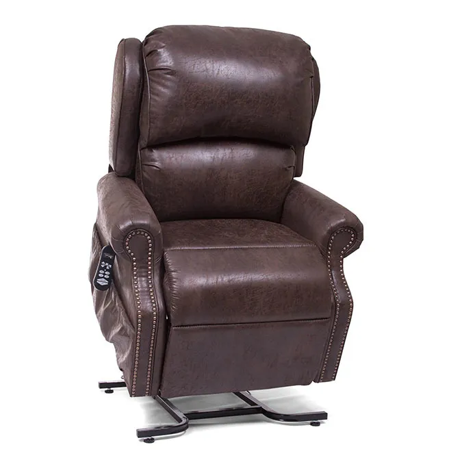 Highlight your formal décor while enjoying casual comfort in this classic, pub-style power lift recliner with brass nailhead accents. Enjoy the longlasting comfort of a well-tailored pillow back, plush chaise pad, and pocketed coil seat construction. These details paired with our patented positioning technology will have you enjoying hours of comfort with sophisticated style.