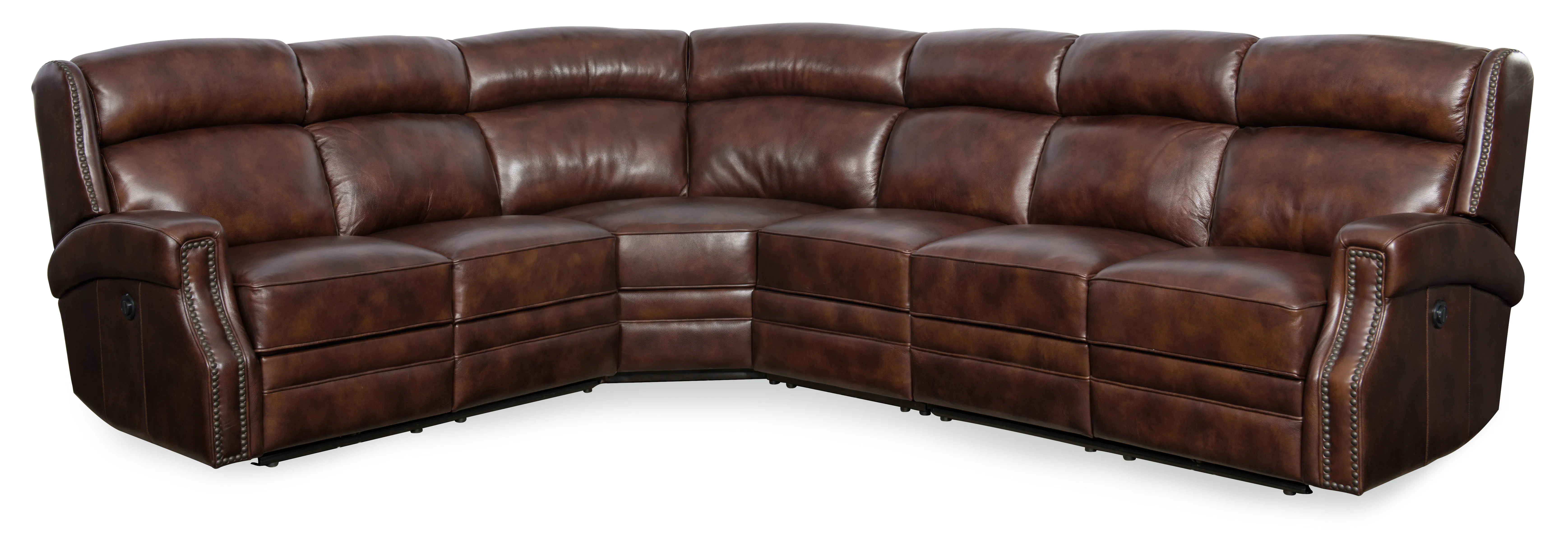 The entire family can get comfortable on this 4-piece, L-shaped motion sectional with casual classic style for a refreshing twist on traditional design. Padded box arms and a traditional wing back trimmed with antique brass nails provide elegance, and the chocolate-colored leather provides protection against spills and has a soft hand and subtle two-tone effect for richness. CarlisleÕs power headrests and power recliners on the ends and on a single reclining seat beside the corner wedge allow unlimited positioning and exceptional comfort.