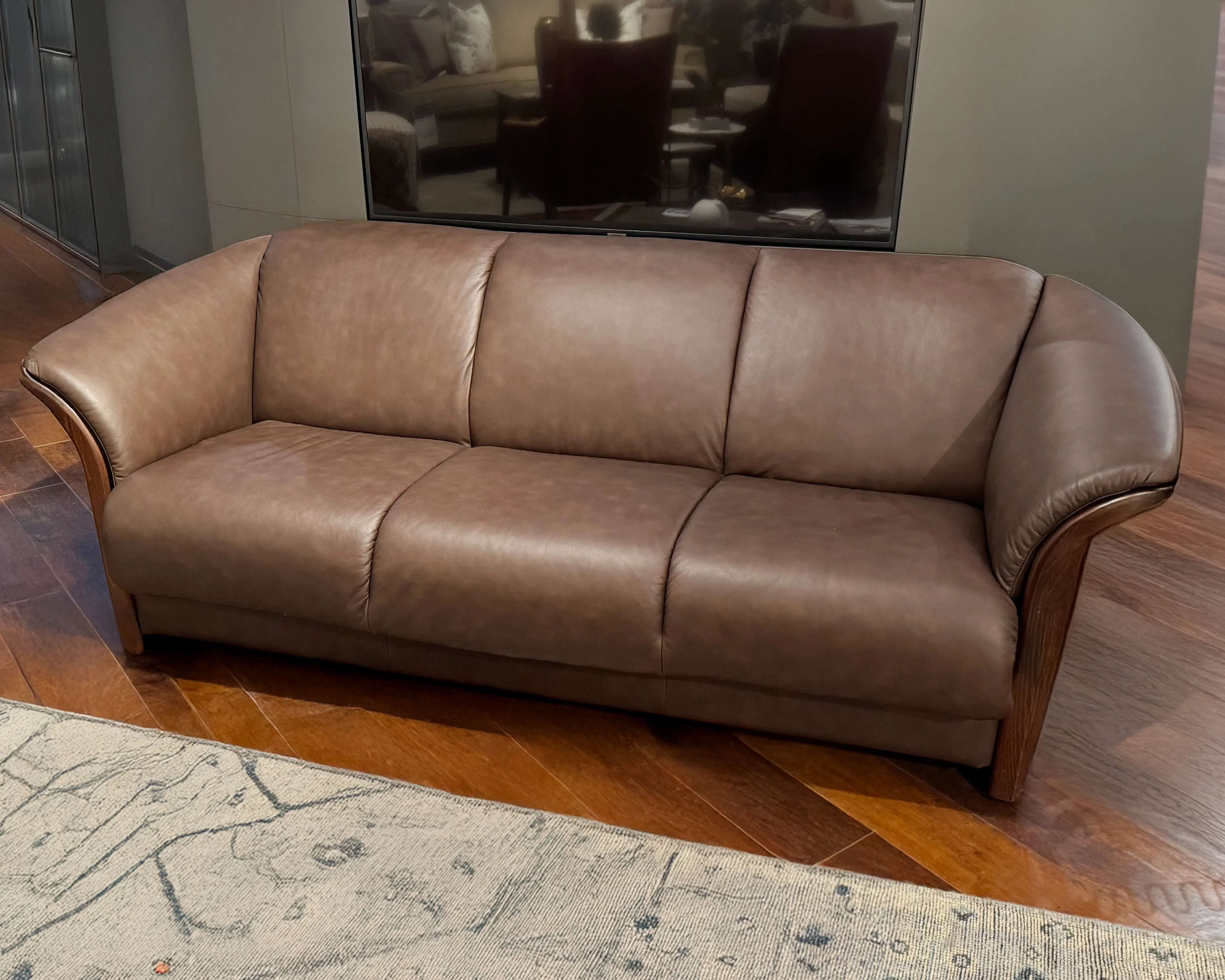 Cosmopolitan and elegant, the Stressless Manhattan is one of our most popular sofas. Refined with the gently sloping contours, the Manhattan is a stunning example of an original Stressless design. With a fixed back and curved wood finishes, the Manhattan is for those with an evolved sense of style. The Manhattan is available in a traditional three seat sofa, a two seat loveseat, and chair.
