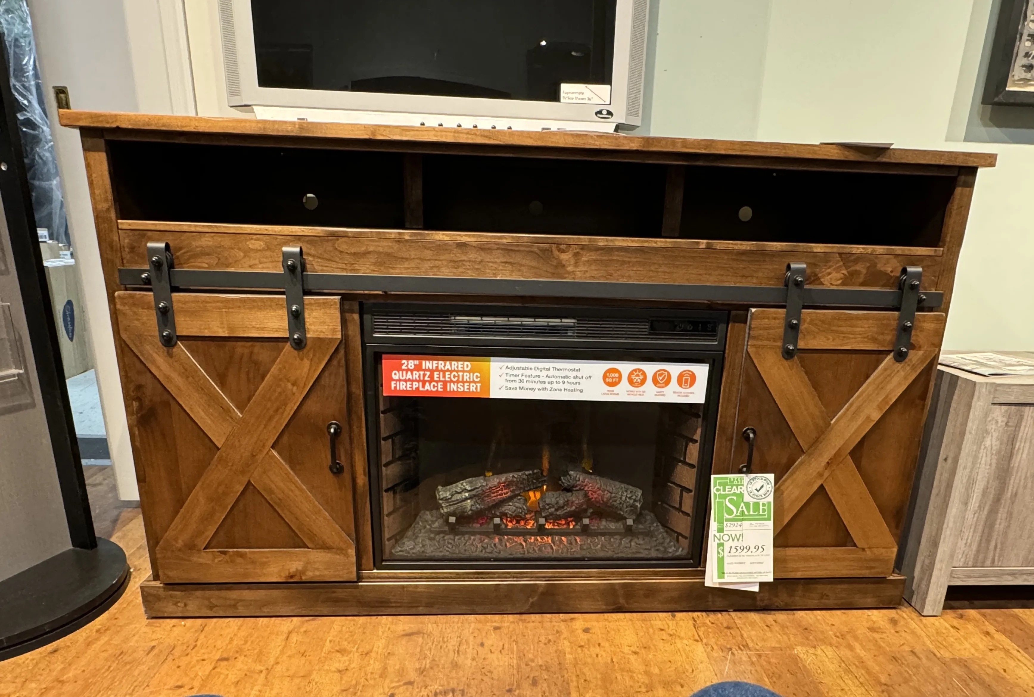 • Electric heated fireplace included with remote controlled heat and flame intensity