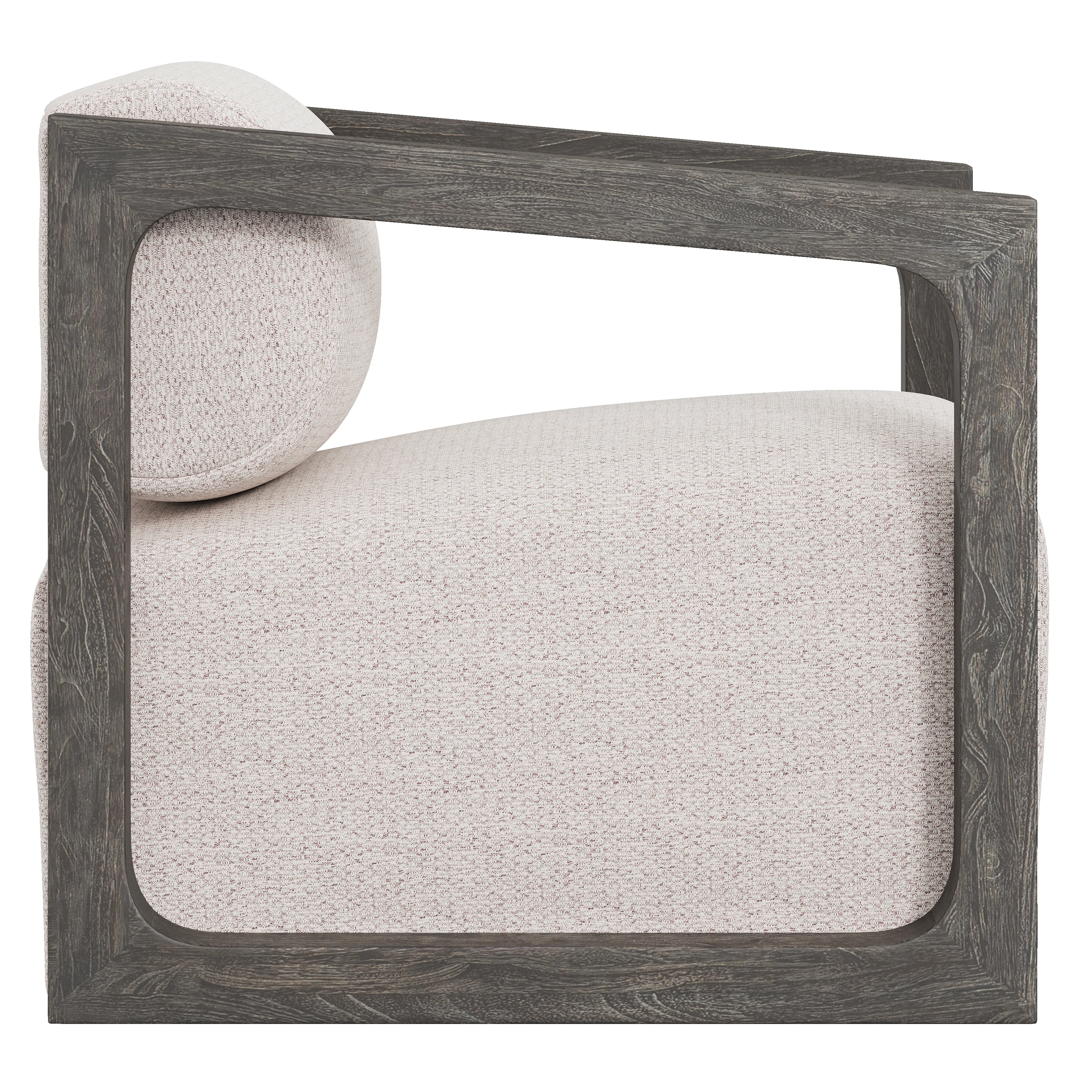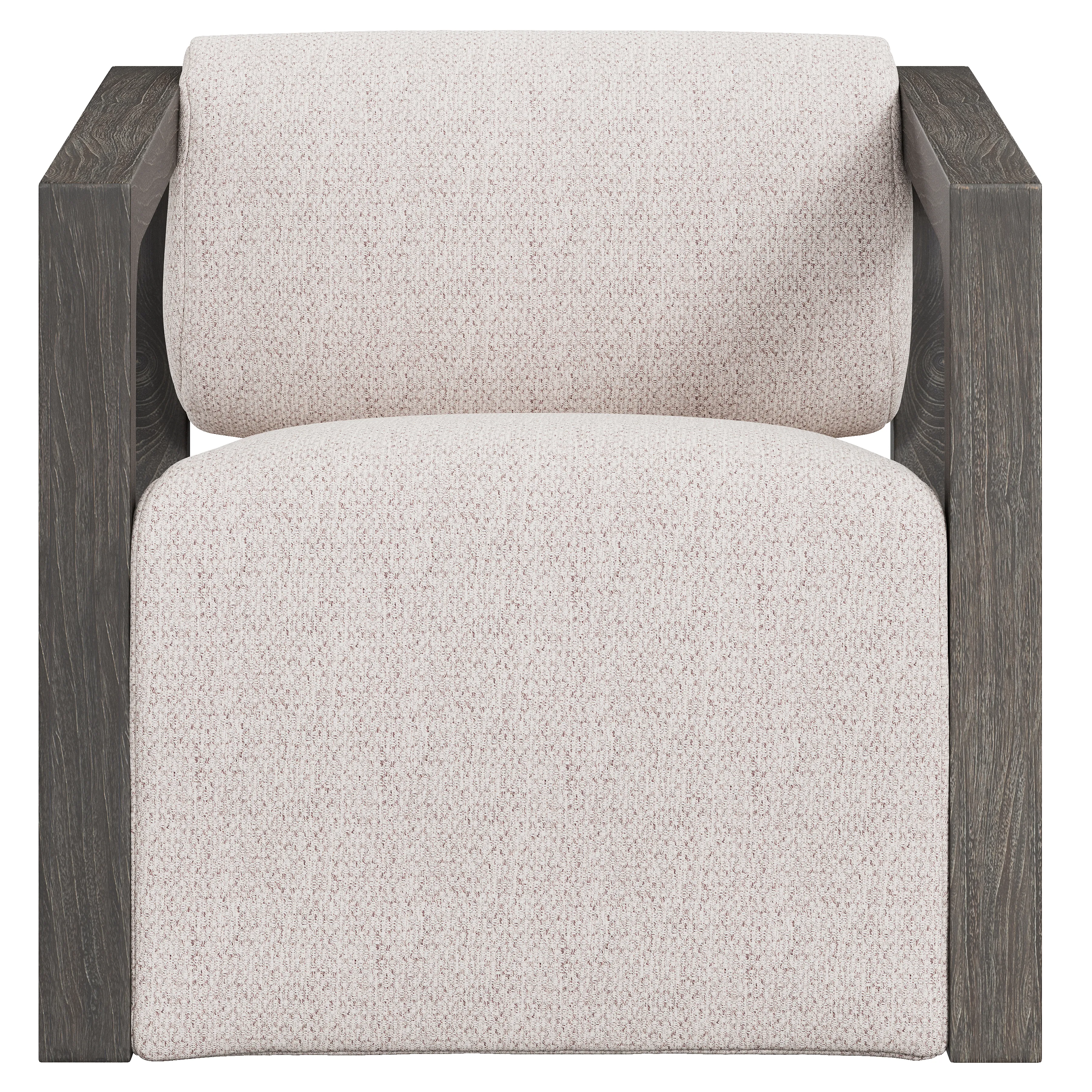 Two exposed teak asymmetrical squares encase the seat and floating back of the Leilani outdoor swivel chair. Offered in the Smoked Truffle finish, the arms provide a gentle slope to the front with softened corners inside the open shape. A rounded back and deeply sloped seat ensure that comfort is key in this 360-degree swivel chair.