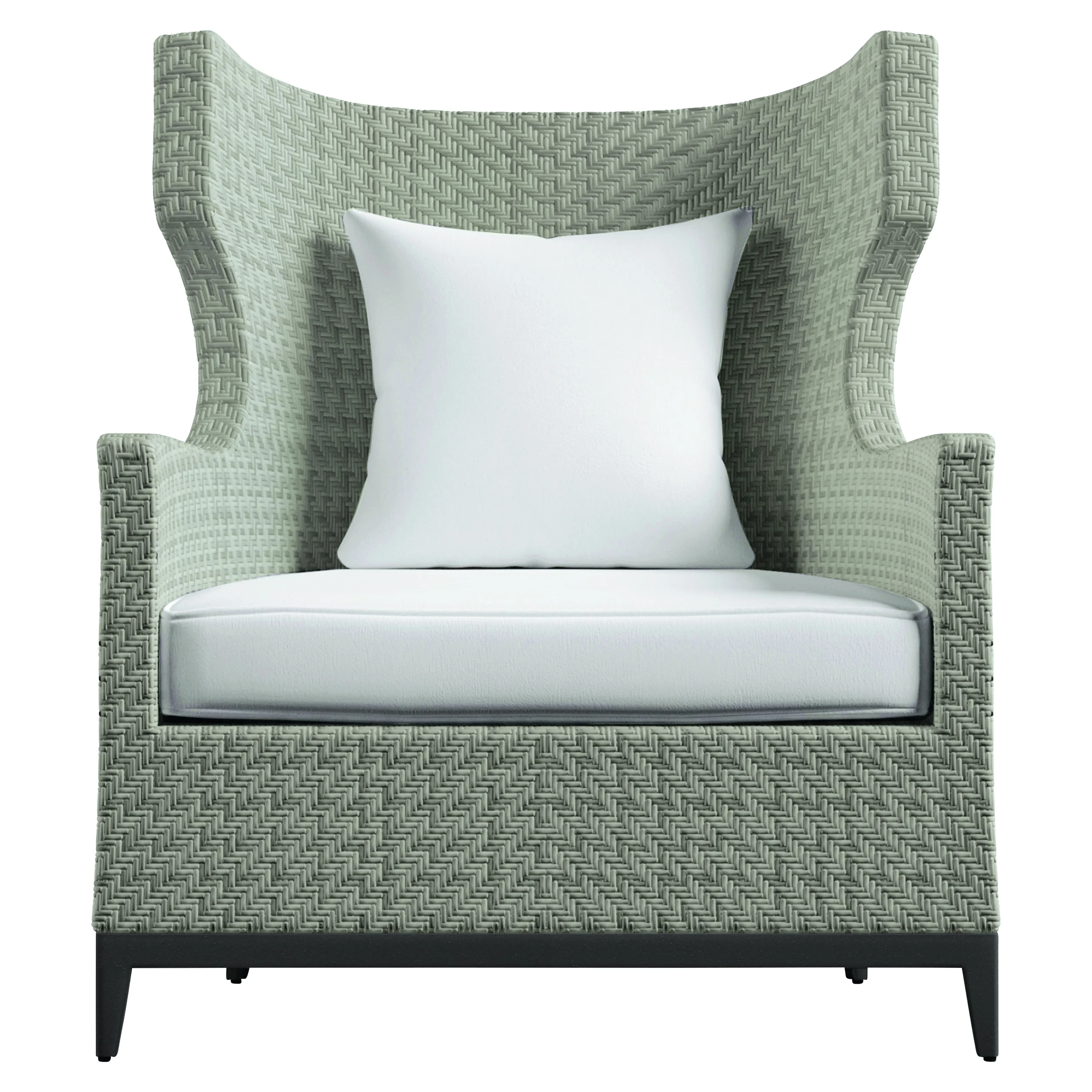 Bernhardt Exteriors is characterized by exceptional luxury, ultimate comfort and elegant design. The Captiva wing chair offers a sophisticated spin on a classic wingback design. Expertly crafted from All-Weather Wicker in a herringbone weave, it features a weltless fiber back pillow for extra comfort. A powder-coated aluminum frame features tapered legs to round out this modern look.