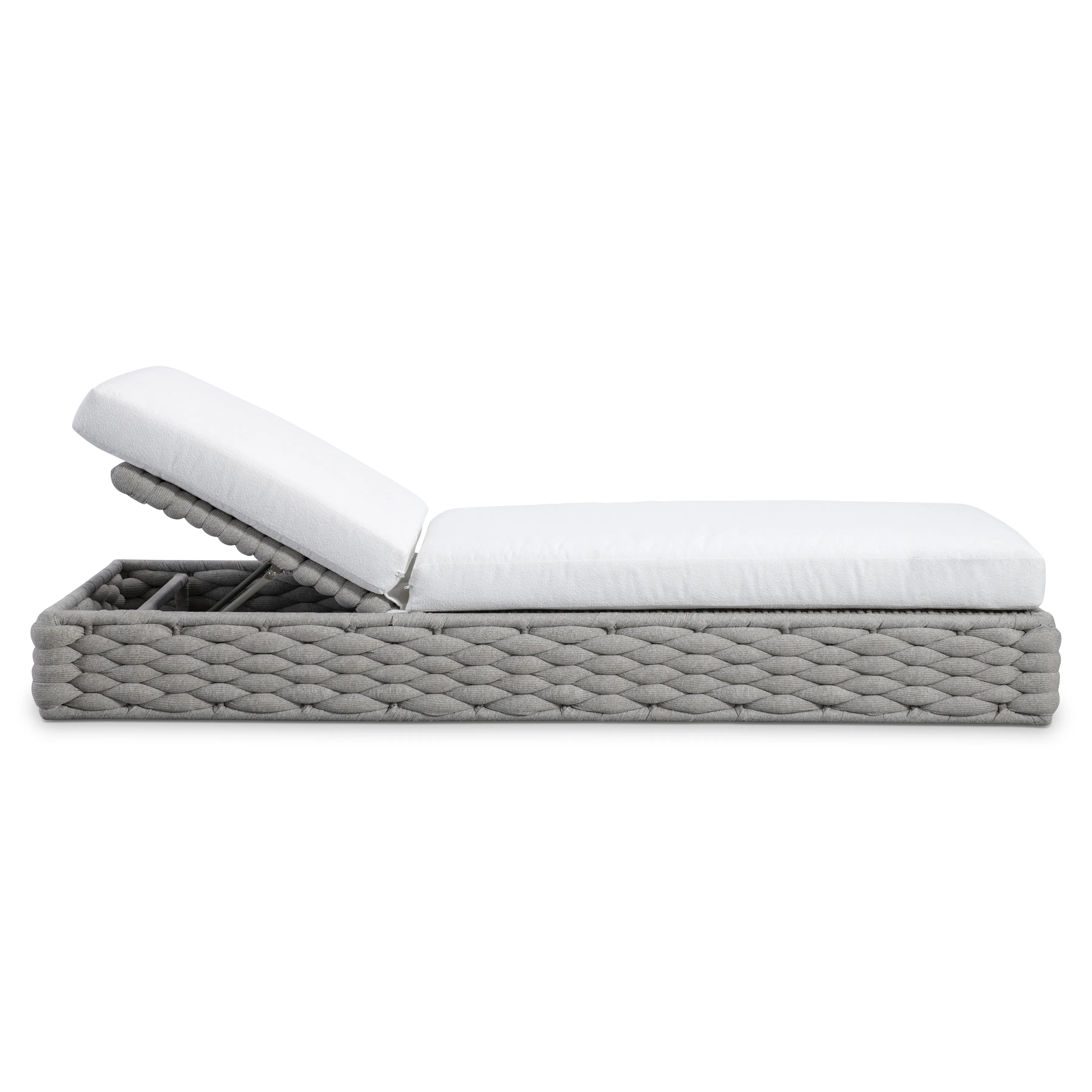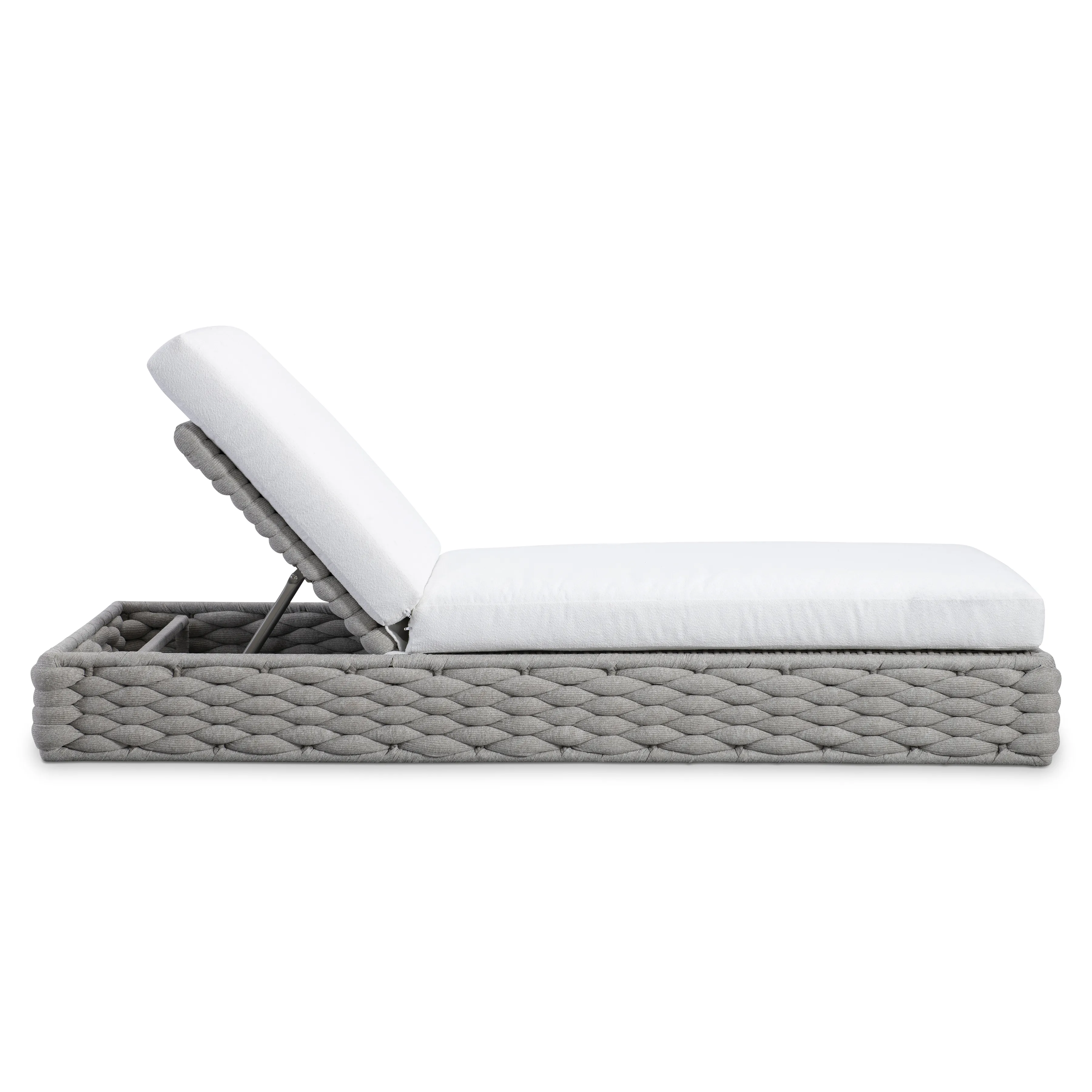 The Salinas chaise has an innovative style that's crafted from a soft-knit sock weave wrapped around an aluminum frame. The texture of the frame is complemented with a comfortable seat cushion and an adjustable back. The unique design offers an elevated look for outdoor living.